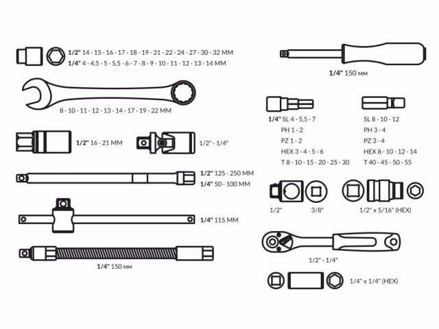 Назначение: многофункциональный набор предназначен для ремонта и обслуживания автомобиля,
