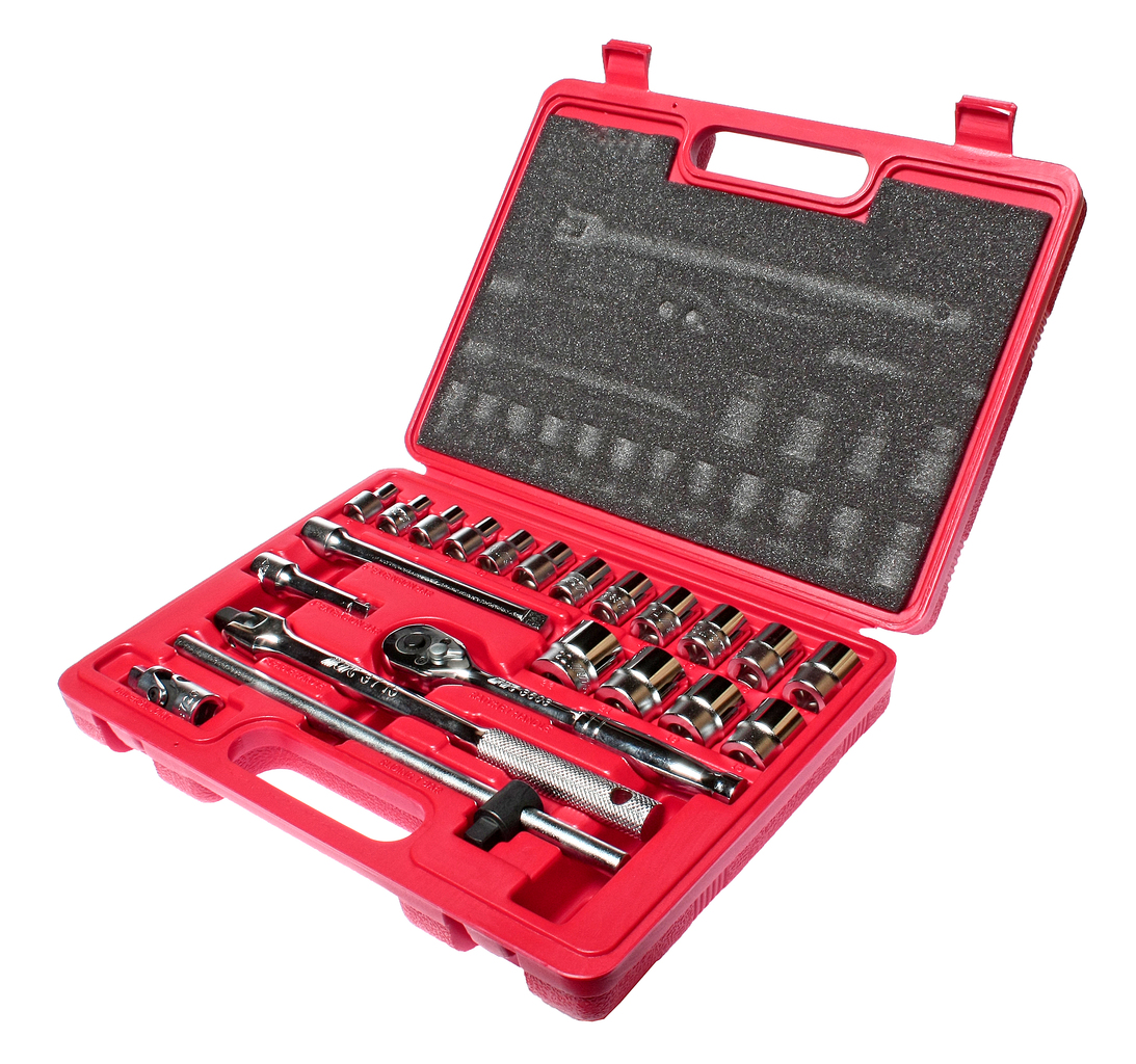 - 16 ед. головка 3/8": 6, 7, 8, 9, 10, 11, 12, 13, 14, 15, 16, 17, 18, 19, 21, 22 мм.