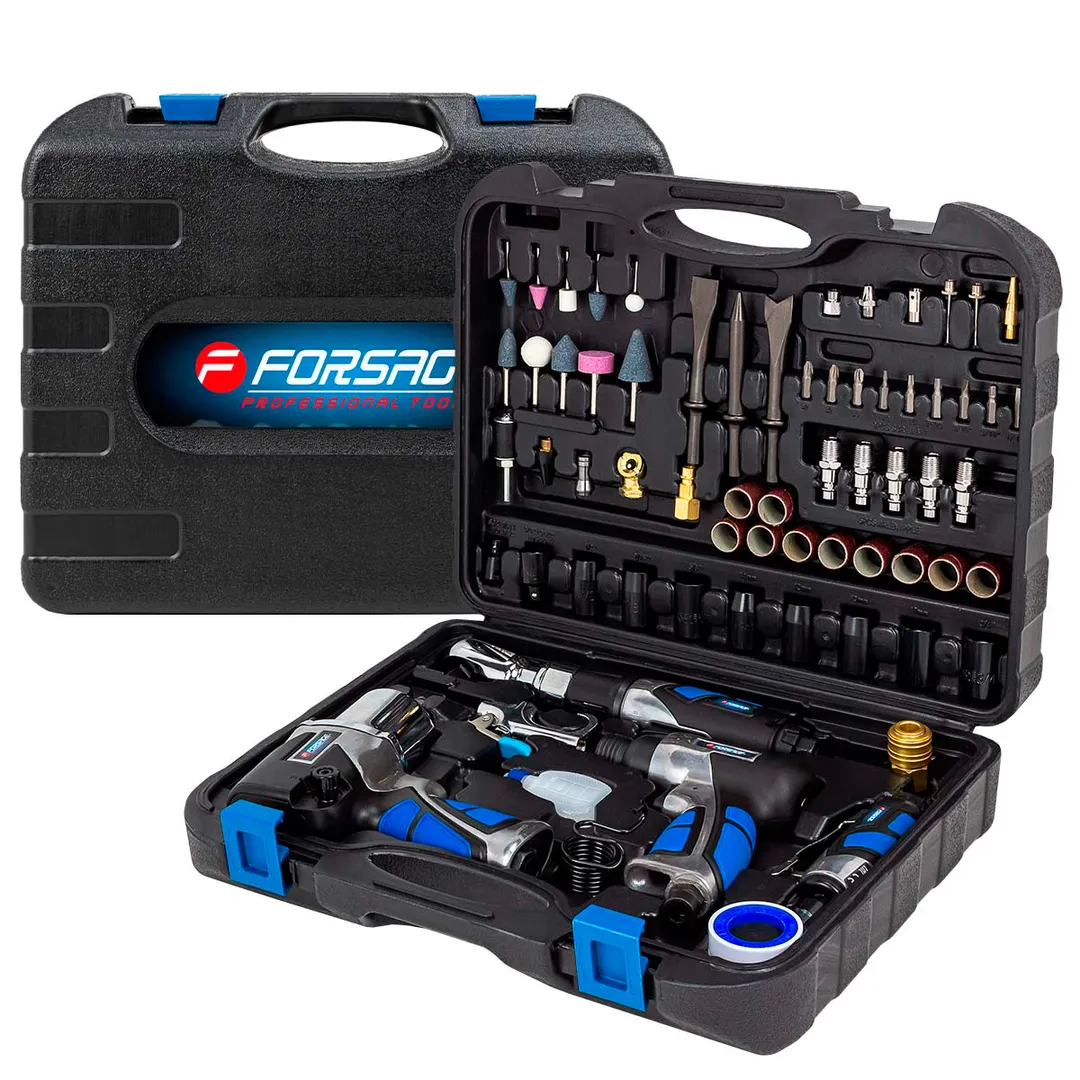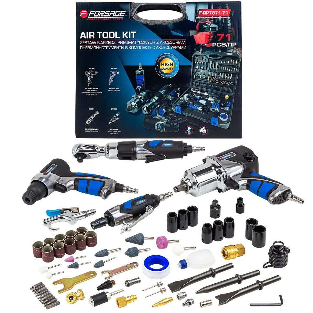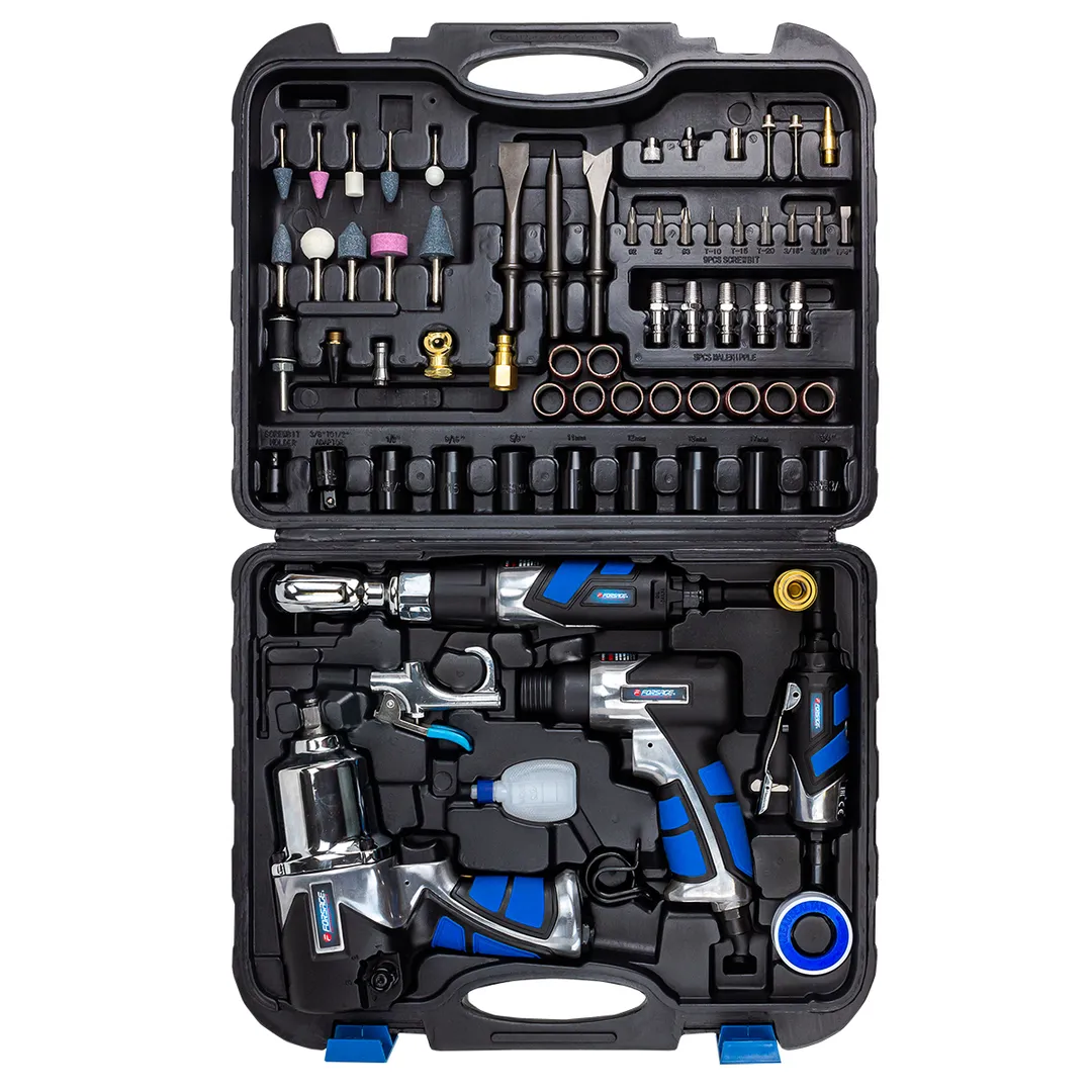Набор пневмоинструмента с аксессуарами - это универсальный набор. в который входит все что нужно для выполнения различных работ. Набор пневмоинструмента предназначен для откручивания и закручивания болтов и гаек, винтов, шурупов, саморезов, зачистки поверхностей от коррозии, грязи и т.п., обдувки поверхностей от воды, пыли и других загрязнений. Профессиональные автомеханики и автолюбители, гараж которых оснащен достаточно мощным компрессором, смогут по достоинству оценить все преимущества набора пневматических инструментов и аксессуаров. Работающие на сжатом воздухе пневмоинструменты намного легче, безопаснее и удобнее, чем обычные электрические.
