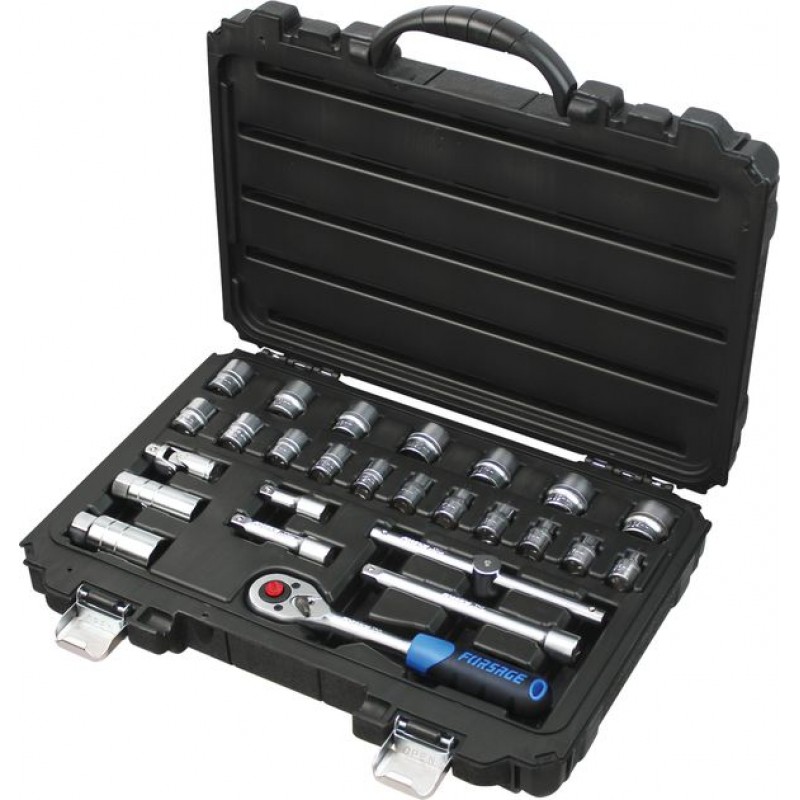 Посадочный квадрат 3/8". Тип головок: 6 гранные, короткие. Комплектация: головоки 3/8"короткие 28 мм: 6, 7, 8, 9, 10, 11, 12, 13, 14, 15, 16,17, 18, 19, 20, 21, 22, 24 мм; головки свечные 3/8"16, 21 мм; трещотка 3/8"; вороток 3/8"Т-образный 165 мм; удлинители 3/8"50, 75, 150 мм; кардан шарнирный 3/8". В пластиковом кейсе.