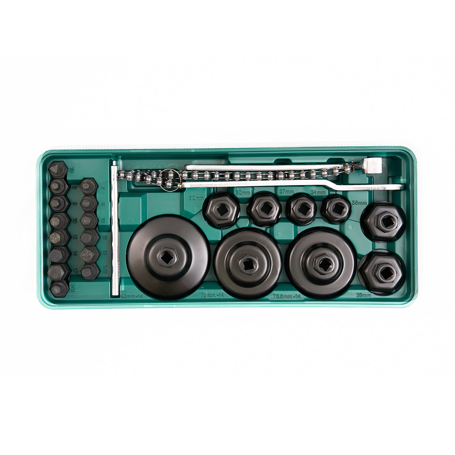 - Чашки для фильтров, мм, 9 шт.: 93/15; 76/14; 75.6/14; 38; 36; 32; 30; 27; 24;