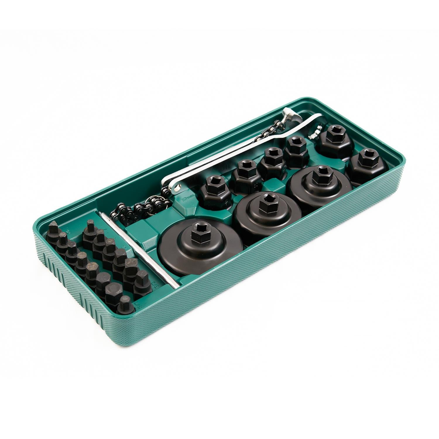 Набор LST025 состоит из съёмников чашечного типа, которые применяются на станциях технического обслуживания и автомобильных мастерских для демонтажа масляных фильтров. Набор изготовлен из высокопрочной стали, что увеличивает его износостойкость и срок эксплуатации. Поставляется в пластиковом ложементе, который надежно фиксирует элементы на своих местах, исключая их соприкосновение друг с другом, защищая от колебаний и полностью сохраняет заводской вид изделий.