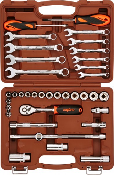 - Головки торцевые 3/8''DR, 16 шт.: 6, 7, 8, 9, 10, 11, 12, 13, 14, 15, 16, 17, 18, 19, 21, 22 мм;