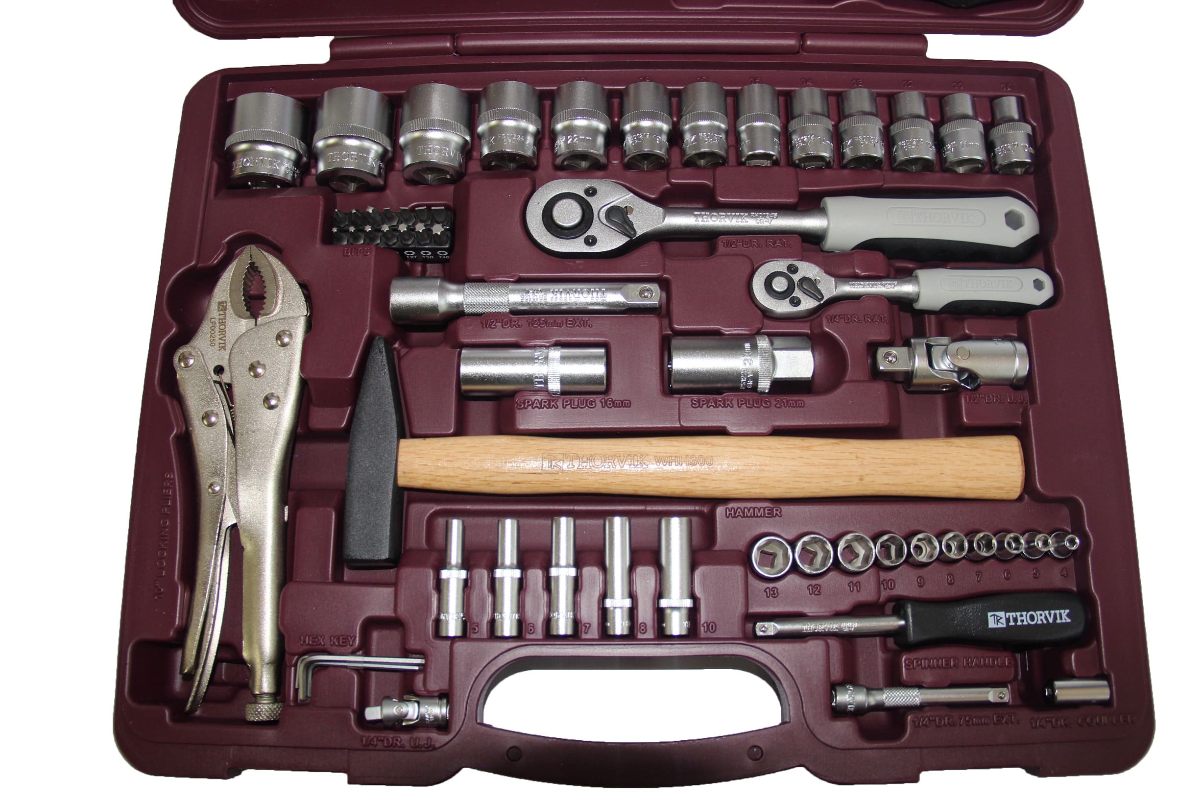 Инструментальные наборы Thorvik - это высокое качество изделий, входящих в состав наборов, удобные прочные кейсы для хранения, оптимальная комплектация позволяющая удовлетворить потребность мастера при обслуживании техники и обеспечить всем необходимым рабочее место при производстве комплексных слесарно-монтажных или механосборочных работ. Наборы Thorvik имеют ударопрочный морозоустойчивый кейс с надеждными защелками. Самые полные и удобные по наполнению комплектации для всех типов задач.