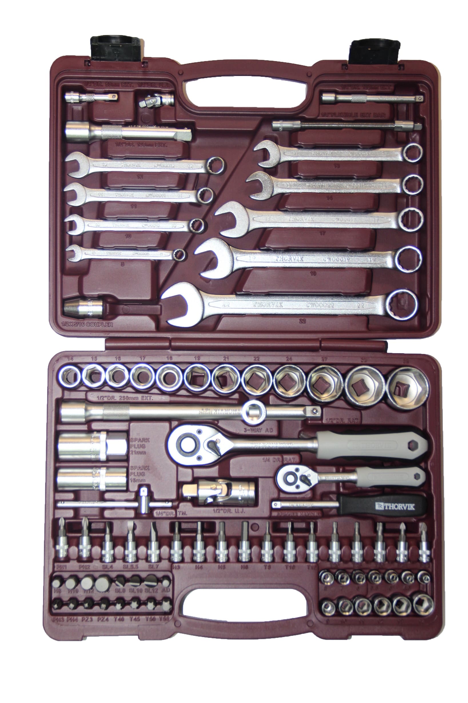 Инструментальные наборы Thorvik - это высокое качество изделий, входящих в состав наборов, удобные прочные кейсы для хранения, оптимальная комплектация позволяющая удовлетворить потребность мастера при обслуживании техники и обеспечить всем необходимым рабочее место при производстве комплексных слесарно-монтажных или механосборочных работ. Наборы Thorvik имеют ударопрочный морозоустойчивый кейс с надеждными защелками. Самые полные и удобные по наполнению комплектации для всех типов задач.