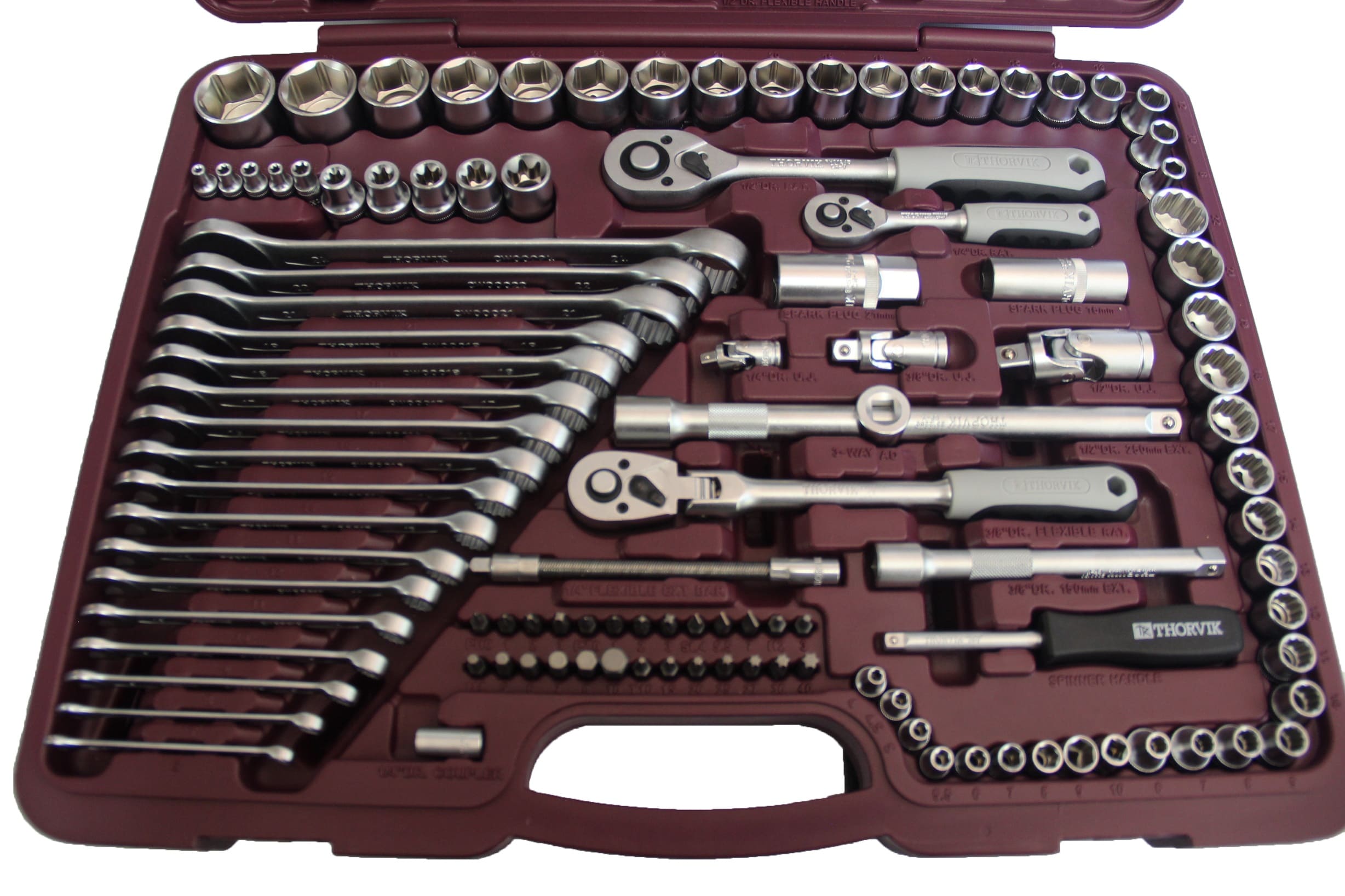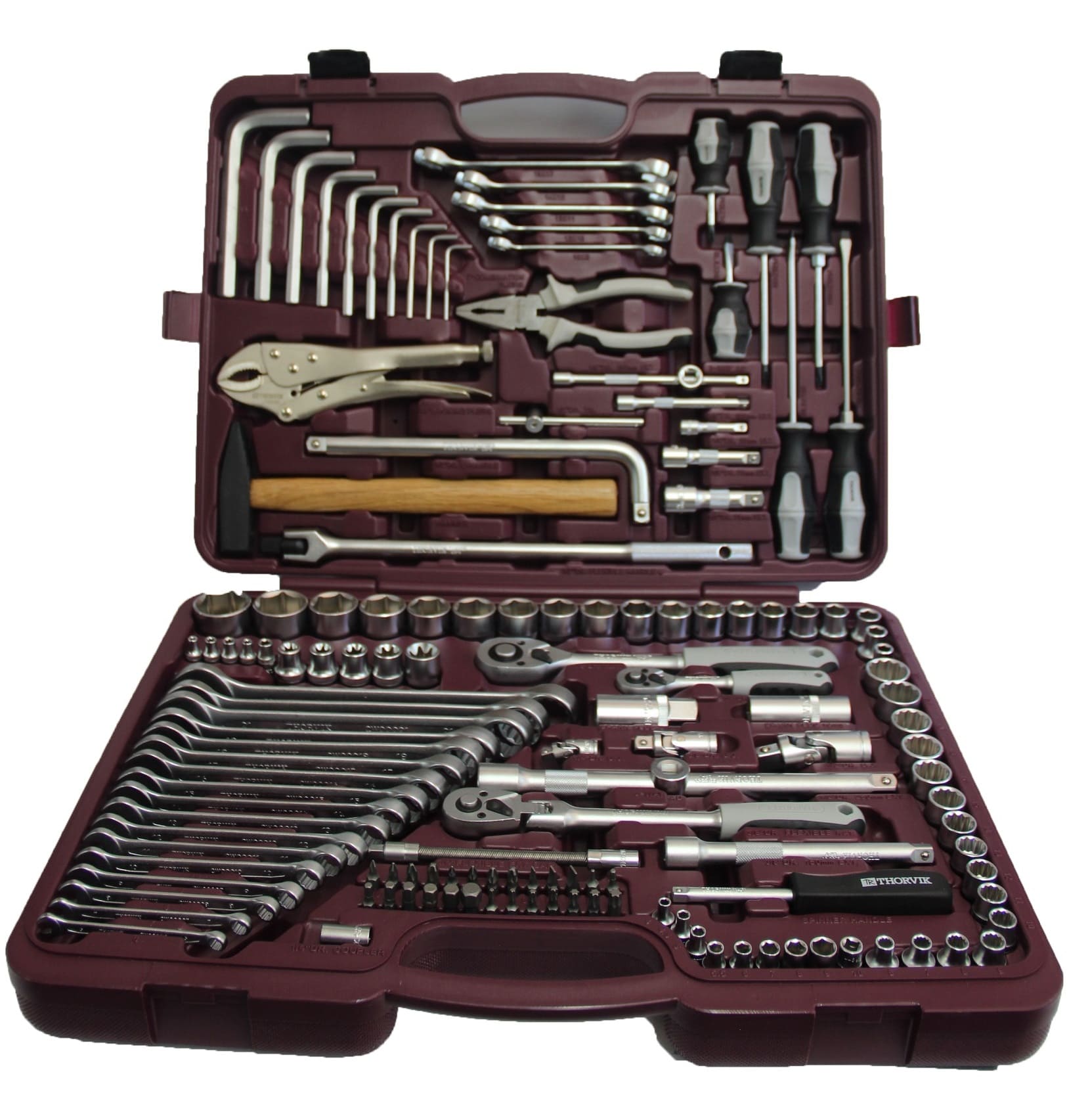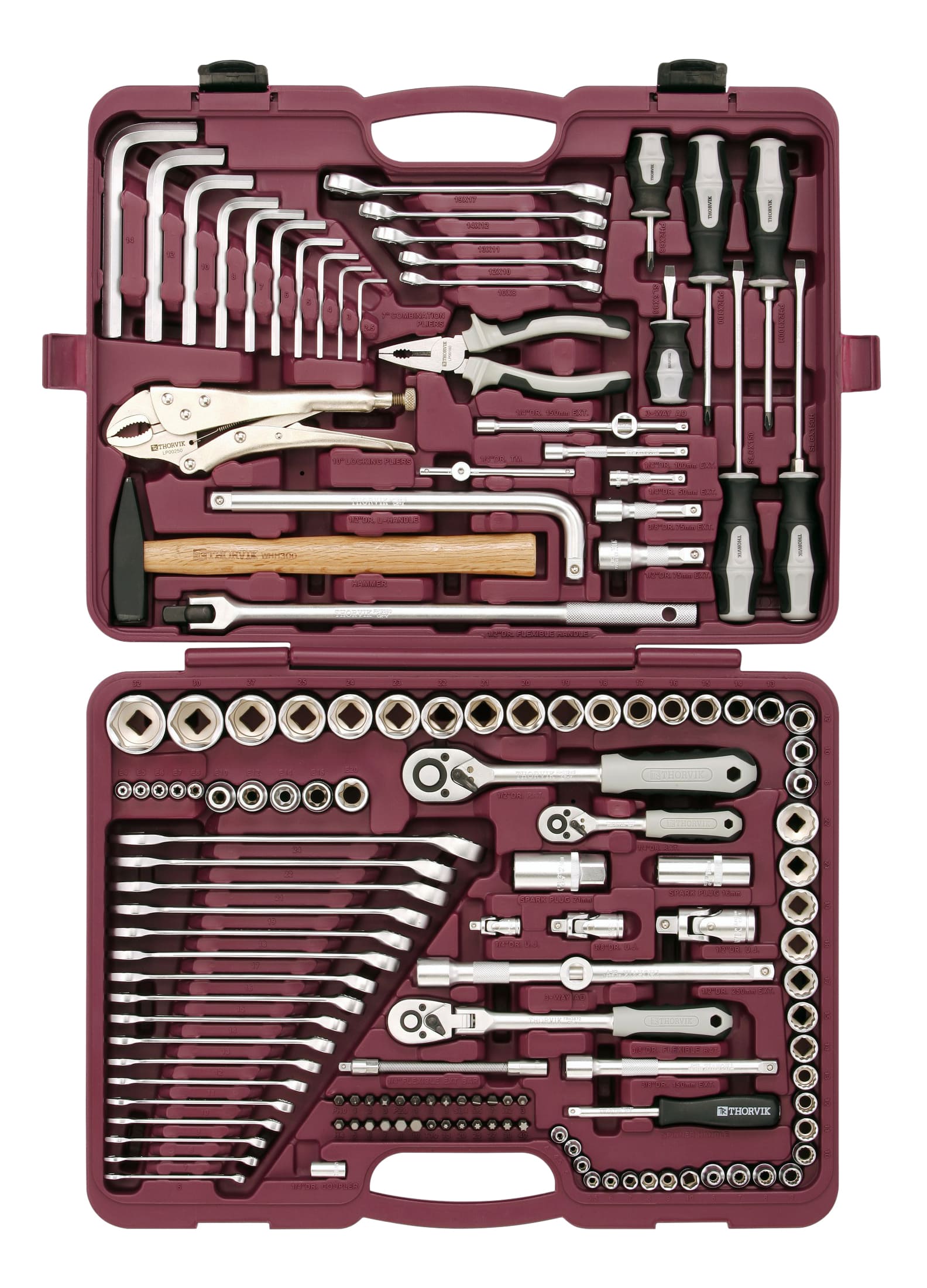 Инструментальные наборы Thorvik - это высокое качество изделий, входящих в состав наборов, удобные прочные кейсы для хранения, оптимальная комплектация позволяющая удовлетворить потребность мастера при обслуживании техники и обеспечить всем необходимым рабочее место при производстве комплексных слесарно-монтажных или механосборочных работ. Наборы Thorvik имеют ударопрочный морозоустойчивый кейс с надеждными защелками. Самые полные и удобные по наполнению комплектации для всех типов задач.