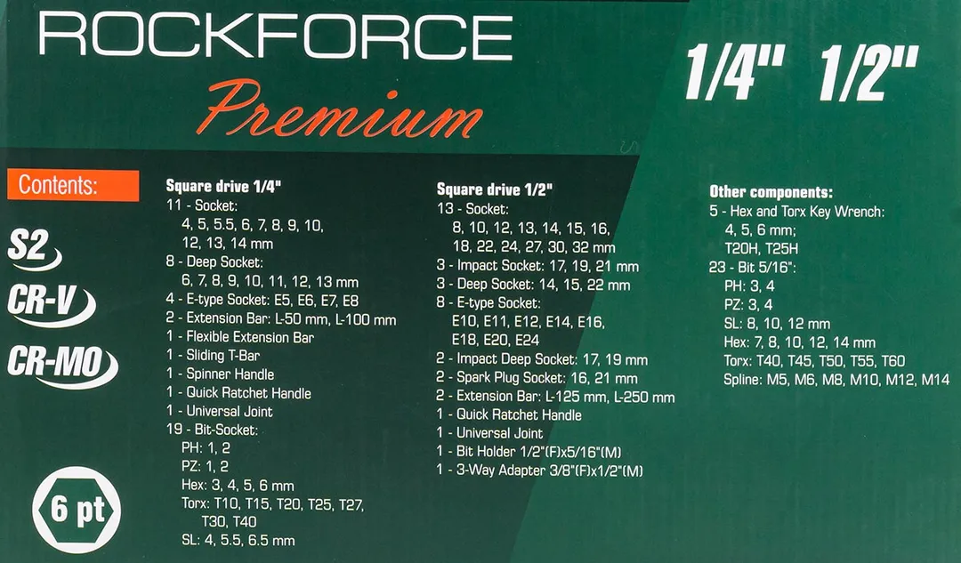 Посадочный квадрат: 1/2", 1/4".