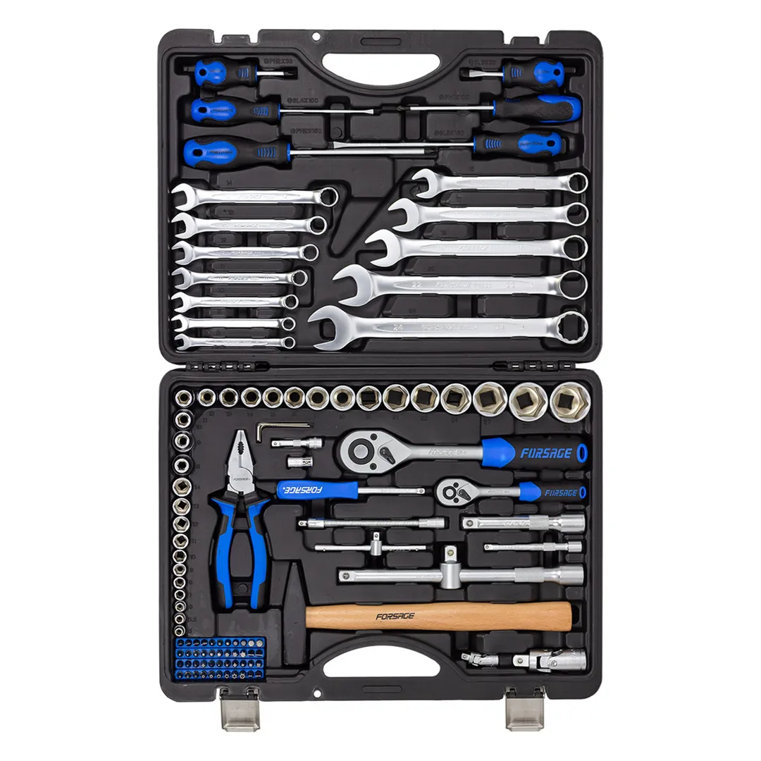 Набор инструментов 110 предметов - это идеальное решение для профессиональных механиков и любителей автомобильных ремонтных работ. Комплектация включает в себя разнообразные инструменты, удовлетворяющие широкий спектр потребностей. В наборе имеются посадочные квадраты 1/4" и 1/2". Материал инструментов прочный и надежный - хромованадиевая сталь (CrV). Этот набор инструментов отличается высоким качеством и разнообразием инструментов, что делает его идеальным выбором для профессиональных механиков и любителей автомобильных ремонтных работ.