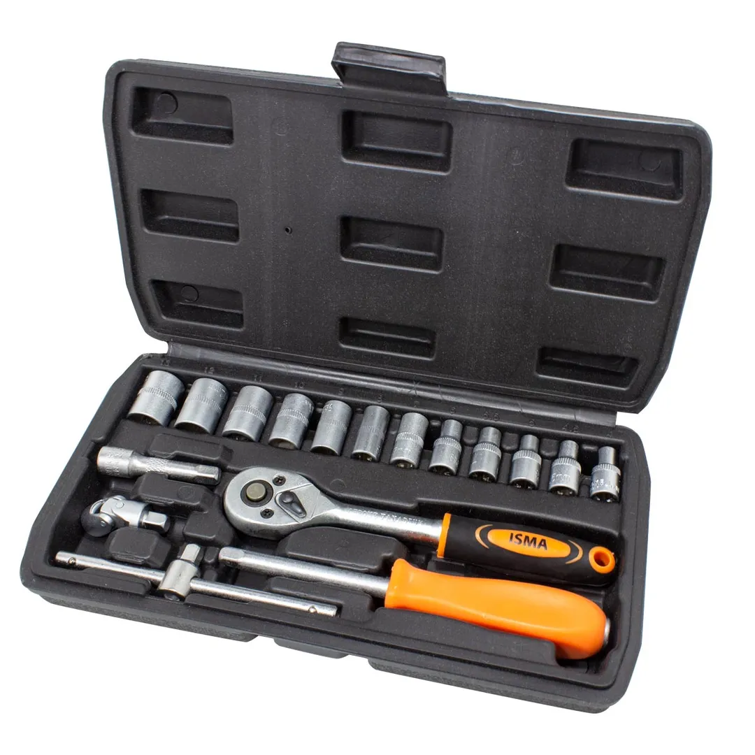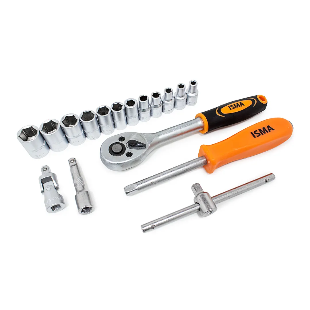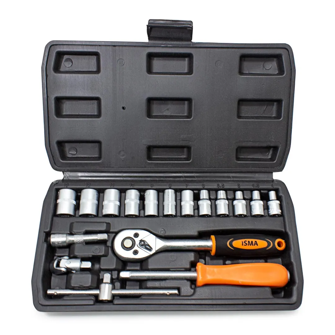 Набор инструментов для выполнения слесарных, монтажных, ремонтных работ из 17 предметов, которые изготовлены из качественного материала - хромвандиевая сталь,обладающая повышенной прочностью, надежностью, устойчивостью к коррозии металла. Для удобства экплуатации и транспортировки, инструменты укамплектованы в пластиковй кейс с защелками.
