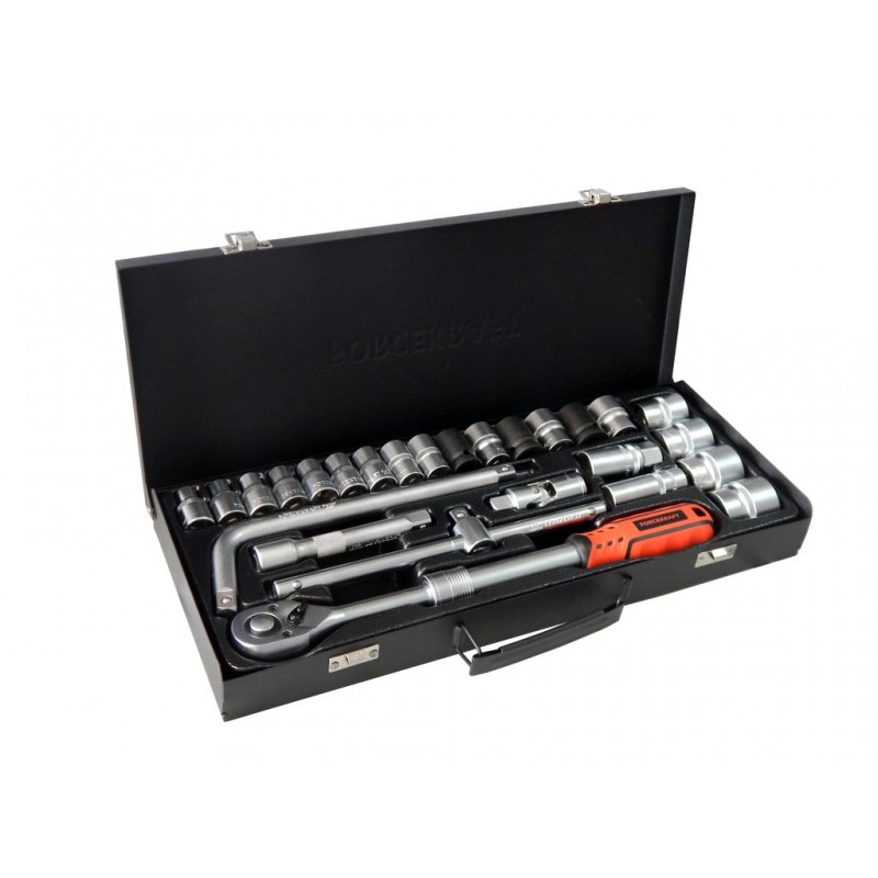 "Торцевые головки 1/2"" 19 предмет(ов) (8-32мм) Трещотка (1/2"") Т-образный вороток 1/2"" Кардан 1/2"" Удлинители 1/2"" 1 предмет(ов) Головки свечные 1/2"" 2 предмет(ов)"