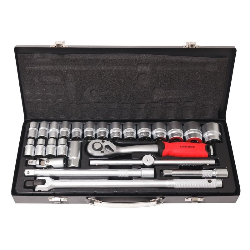 " - Торцевые головки: 10-32мм - Удлинители 5"", 10"" - Т-образный вороток - Кардан - Вороток шарнирный - Свечная головка 21мм - Трещотка"