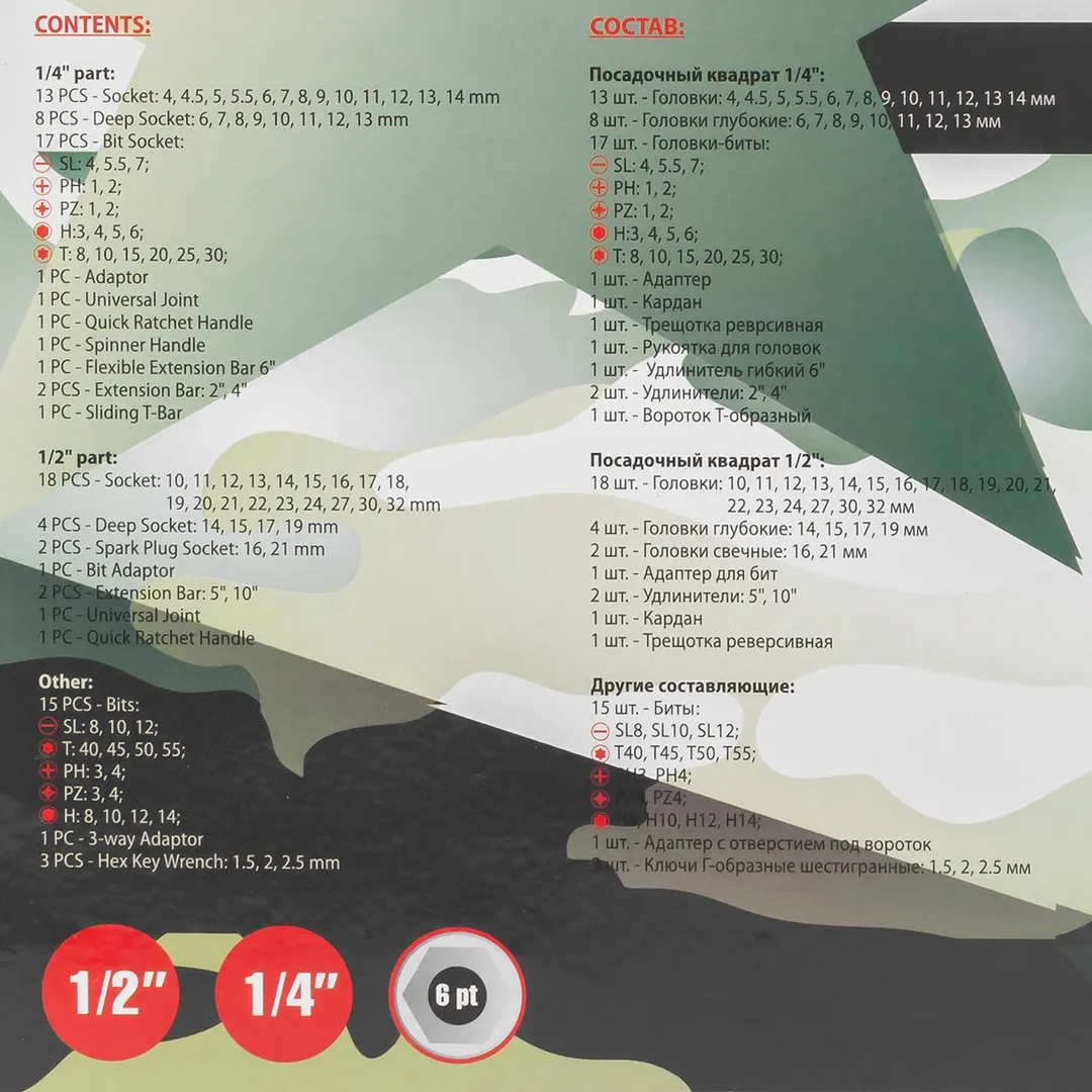 головки 1/2" глубокие 77 мм: 14, 15, 17, 19 мм;