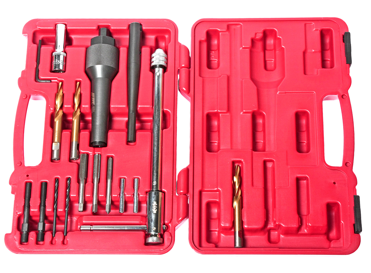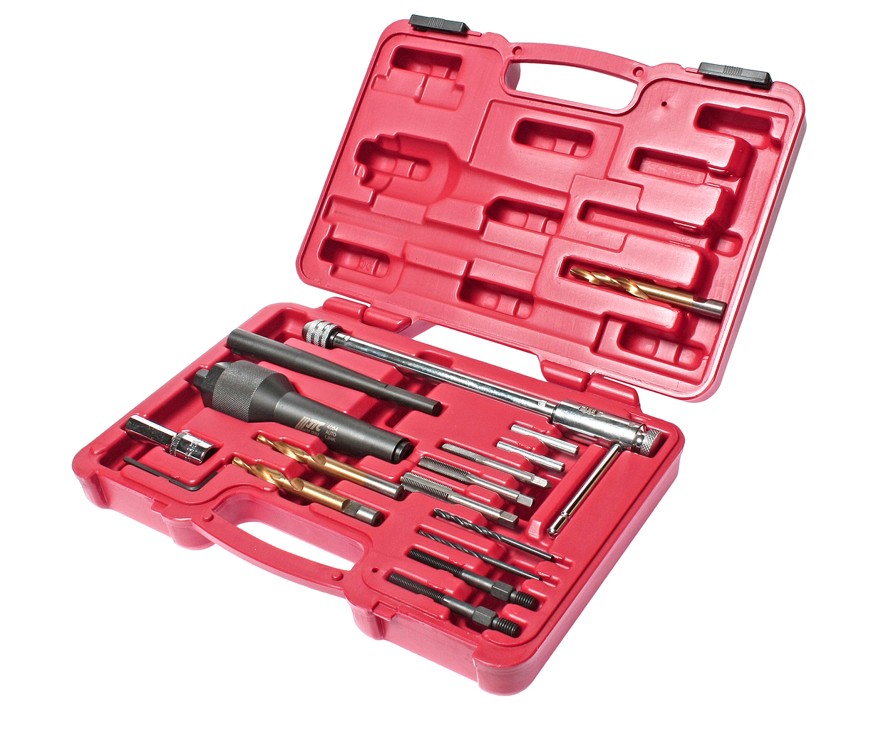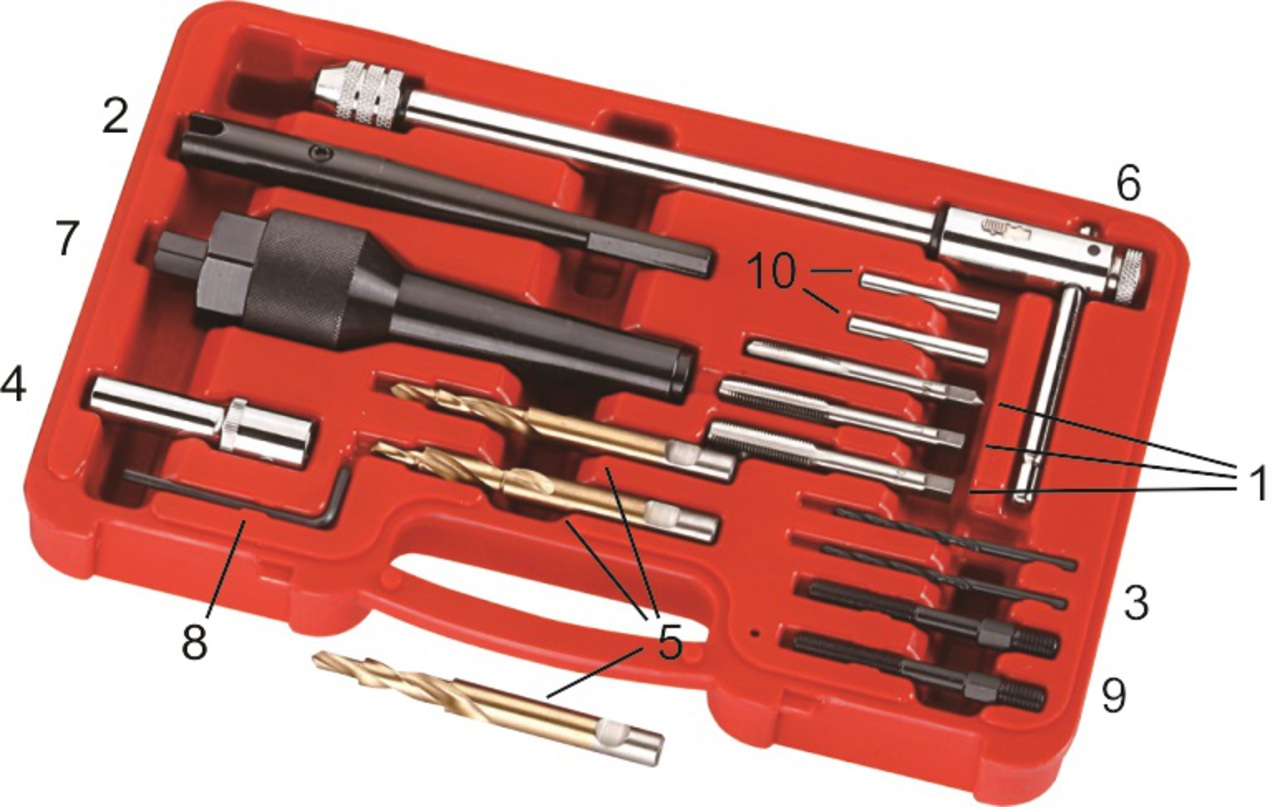 - Набор профессионального инструмента для извлечения свечей накаливания и восстановления резьбы в их колодцах, а также для высверливания шпилек, болтов, свечей зажигания.