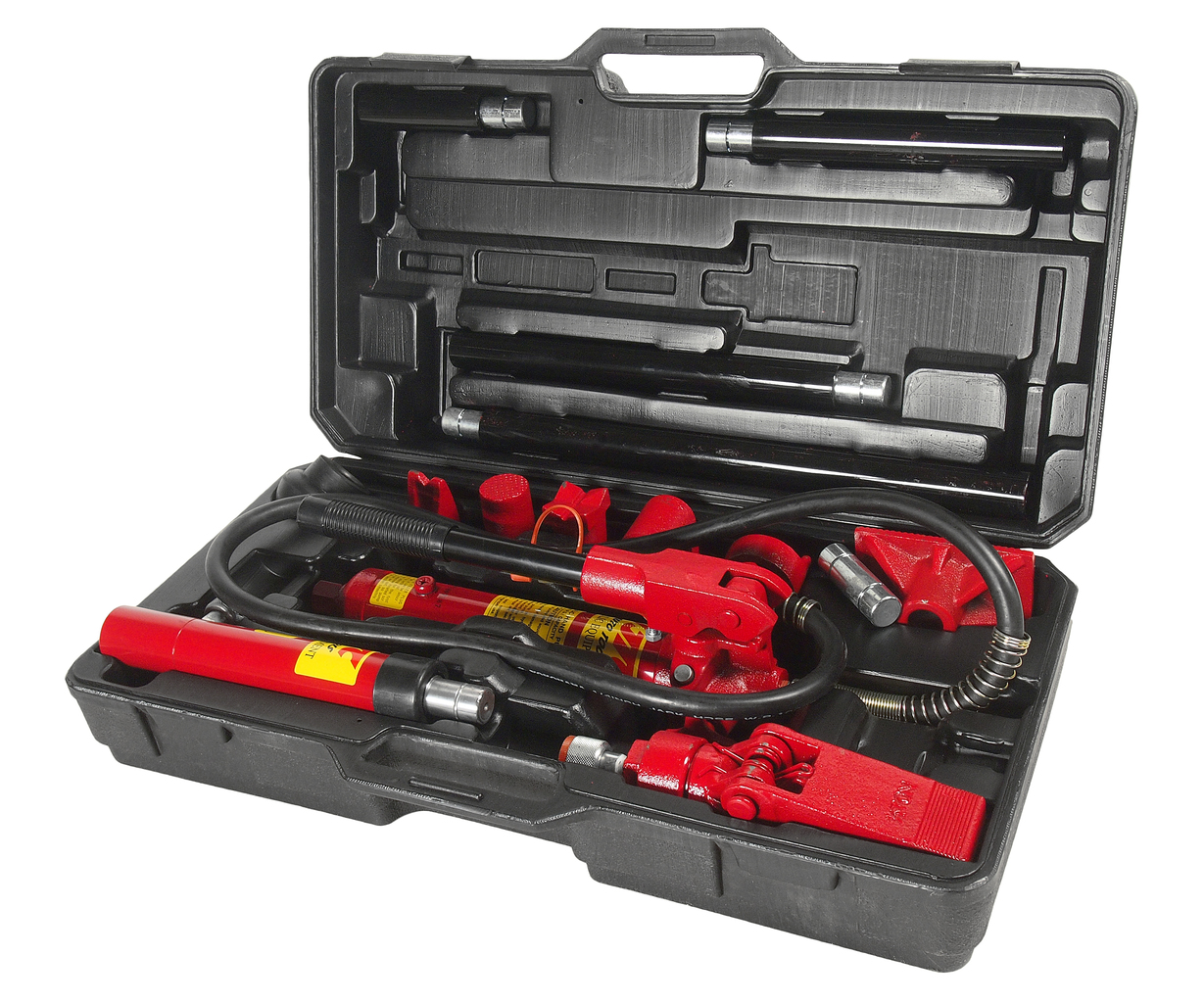 - Набор гидравлического инструмента представляет собой компактный и удобный в эксплуатации комплект из гидравлического насоса (1) и гидравлического цилиндра (3), с помощью которых создается рабочее усилие; удлинителей для упрощения работы (5-8); специальных фигурных соединяющих насадок (11-16), для надежного упора в детали кузова.