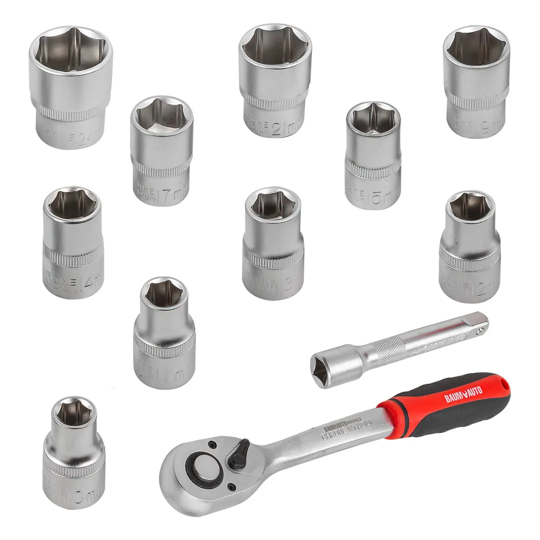головки шестигранные короткие 1/2" 38мм: 10, 11, 12, 13, 14, 15, 17, 19, 21, 24 мм;