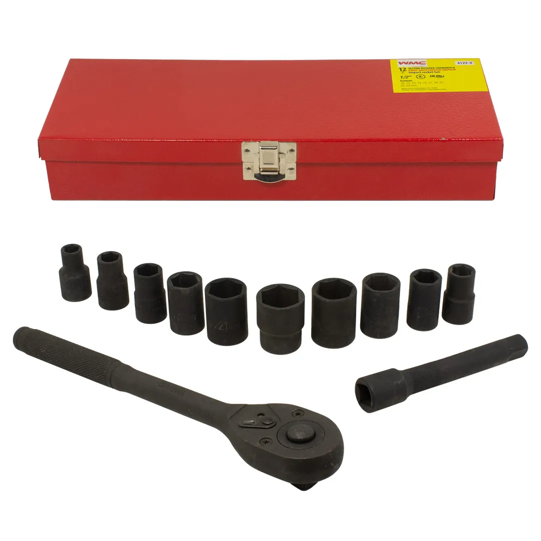 головки ударные шестигранные 1/2": 10, 12, 13, 14, 15, 17, 19, 21, 22, 24 мм;
