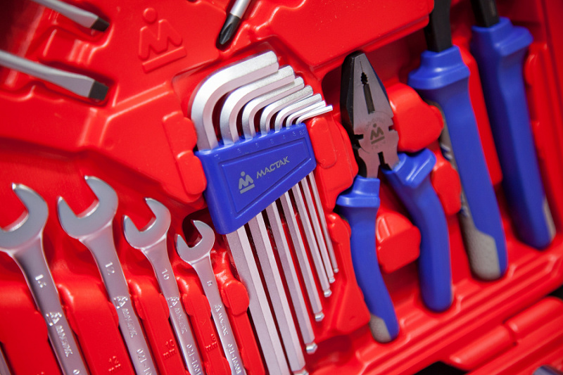 Отличный по составу и функциональным возможностям набор инструментов фирмы МАСТАК подойдёт в качестве надёжного помощника для любого автомобиля, для работы в гараже, а также в любой мастерской или станции ТО. Ключи и головки различной конфигурации и типов, насадки различного профиля, всевозможные принадлежности для удобной работы с различными узлами автомобиля и прочими механизмами; отвёртки, шарнирно-губцевые инструменты – всё, что удовлетворит потребности самого требовательного мастера!