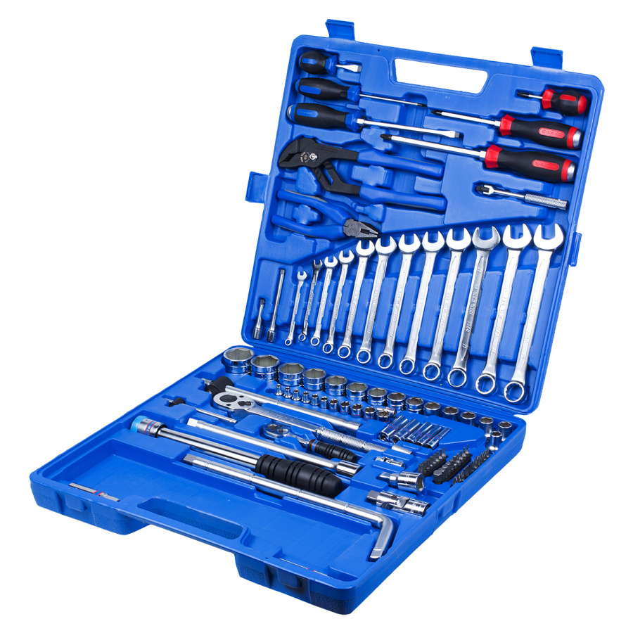 Набор инструментов для автомобиля универсальный 97 предметов King Tony 7597MR в чемодане – специально подобранный комплект широкого спектра применения, составленный из ручного слесарного инструмента профессионального качества, имеющего расширенную гарантию от производителя, который с успехом используют в работе как профессиональные мастера на станциях технического обслуживания автомобилей (СТОА), так и автолюбители для ремонта своей автомашины либо при домашнем ремонте.