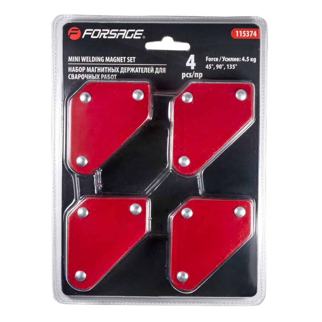 Набор магнитных держателей для сварочных работ 4 предмета: 4,5 кг, 45, 90, 135 градусов. Конструкция магнитных держателей позволяет работать под разными углами при сварке. Может использоваться для углов 45, 90 и 135 градусов. Прочная конструкция: сварочные держатели прочные и способны удерживать до 4,5 кг. Держатели для сварки являются магнитными, поэтому они могут удерживать заготовку под разными углами, освобождая руки для безопасной и эффективной работы. Преимущества: сильный магнит, удобство в использовании, значительно повышает эффективность работы. Применение: подходят для использования в качестве держателей при сварке, пайке, маркировке и установке труб и конструкций из металла. Магнитные держатели упакованы в пластиковый блистер.