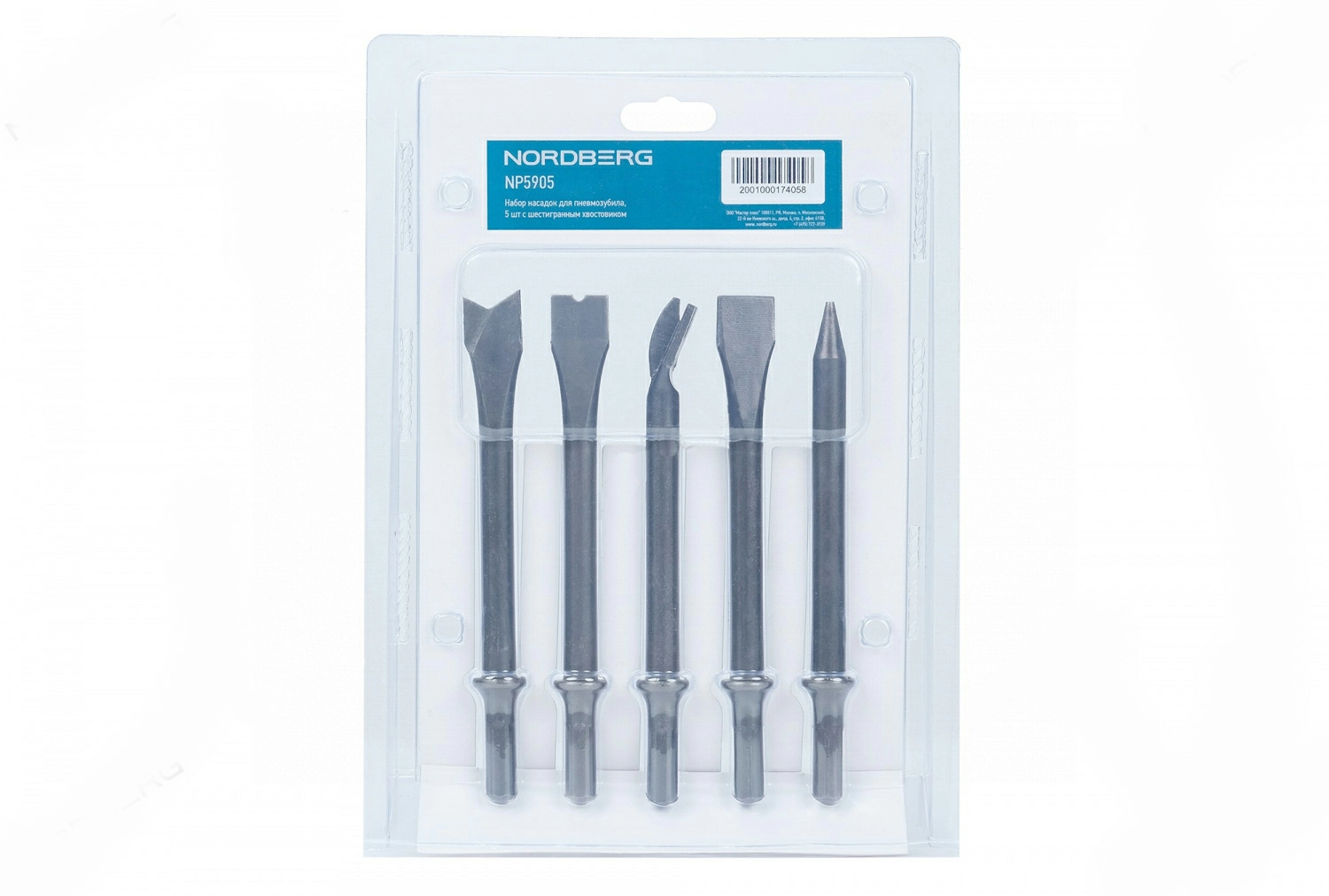 NORDBERG Набор насадок для пневмозубила NP5905, 5 шт с шестигранным хвостовиком