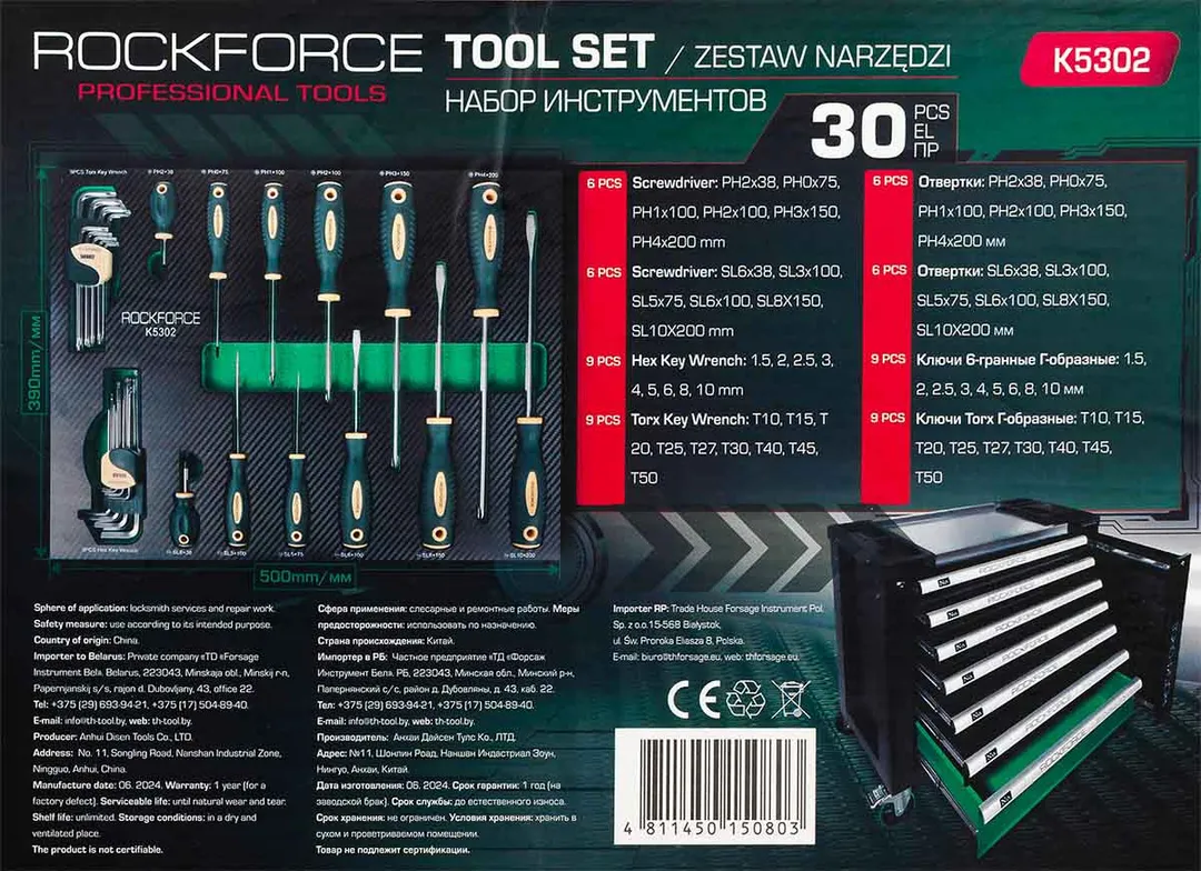 Набор поставляется в паралоновом ложементе 500х390мм.