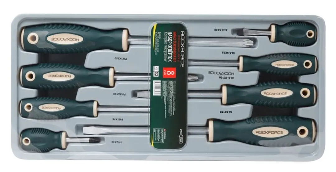 Набор отверток силовых "Profi" с магнитными наконечниками 8 предметов в пластиковом ложементе - это удобный и надежный инструмент для работы с крепежными элементами. В набор входят восемь отверток разной длины и диаметра рабочей части: PH1х75мм, РН2х38мм, PH2х100мм, PH3х150мм; SL5.5x75мм, SL6.5х38мм, SL6.5х100мм, SL8х150мм. Отвертки имеют магнитные наконечники, которые позволяют легко захватывать и удерживать крепежные элементы, что делает работу более быстрой и удобной. Набор отверток предназначен для использования профессионалами, поэтому все инструменты изготовлены из высококачественной стали S2, которая обеспечивает высокую прочность и долговечность. В набор входят отвертки разных размеров, что позволяет выбрать оптимальный размер для каждой конкретной задачи. Рукоятка каждой отвертки имеет эргономичную форму, что обеспечивает удобство при работе и снижает риск повреждения рук. В основании каждой рукоятки предусмотрено сквозное отверстие, которое позволяет подвешивать инструмент на гвоздь или крючок. Благ