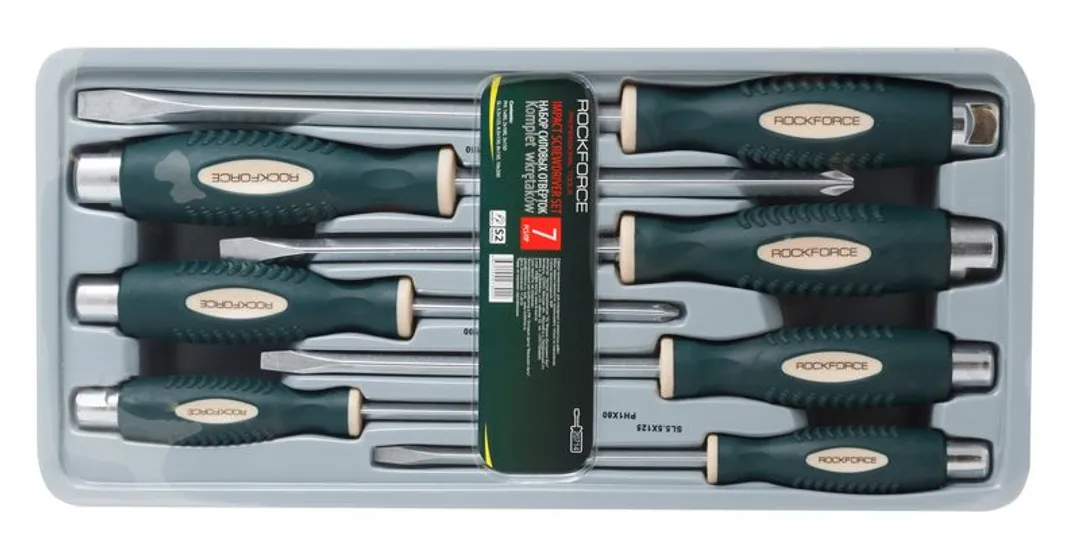 Набор отверток "Profi" с магнитными наконечниками 7 предметов в пластиковом ложементе - это удобный и надежный инструмент для работы с крепежными элементами. В набор входят семь отверток разной длины и диаметра рабочей части: PH1х80мм, PH2х100мм, PH3х150мм; SL5.5x125мм, SL6.5х150мм, SL8х150м, SL10х200мм. Отвертки имеют магнитные наконечники, которые позволяют легко захватывать и удерживать крепежные элементы, что делает работу более быстрой и удобной. Набор отверток предназначен для использования профессионалами, поэтому все инструменты изготовлены из высококачественной стали S2, которая обеспечивает высокую прочность и долговечность. В набор входят отвертки разных размеров, что позволяет выбрать оптимальный размер для каждой конкретной задачи. Рукоятка каждой отвертки имеет эргономичную форму, что обеспечивает удобство при работе и снижает риск повреждения рук. В основании каждой рукоятки предусмотрено сквозное отверстие, которое позволяет подвешивать инструмент на гвоздь или крючок. Благодаря магнитным нако