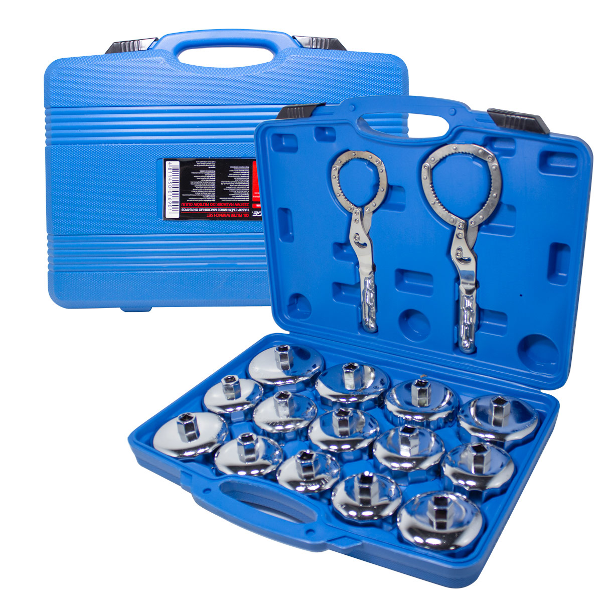 Набор съёмников масляных фильтров "крышек" в комплекте с двумя самозажимными ключами 16пр., в пластиковом кейсе