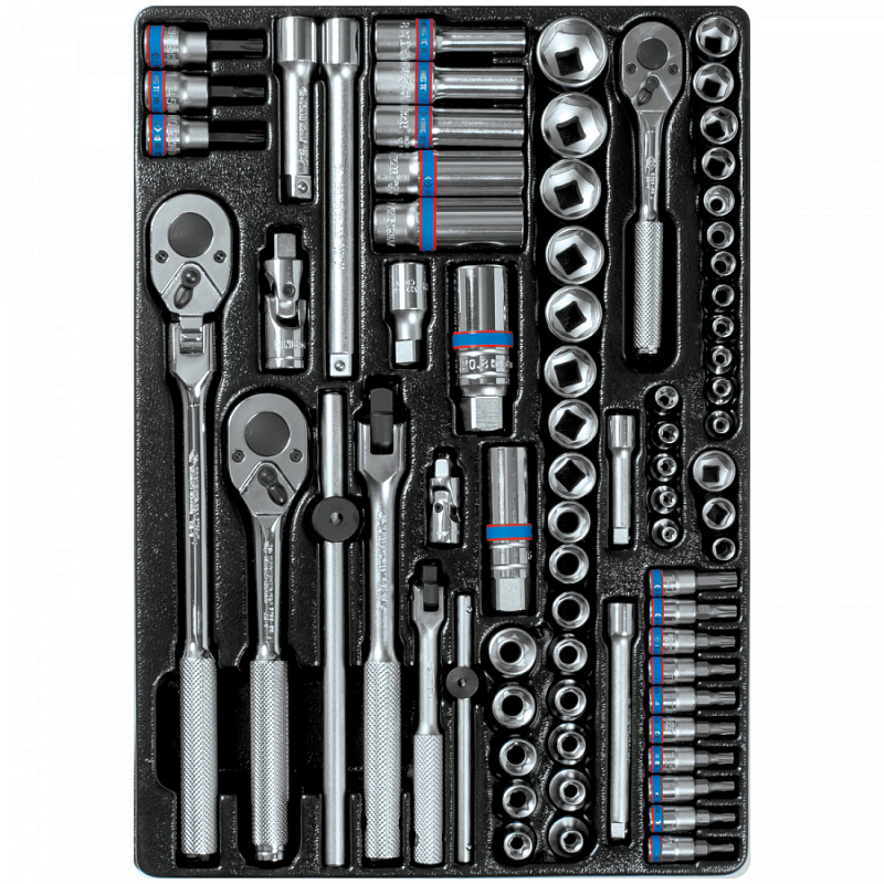 Набор с инструментом торговой марки KING TONY включает в себя торцевые головки и принадлежности, предназначен для монтажа и демонтажа крепёжных узлов различных изделий, устройств и агрегатов.