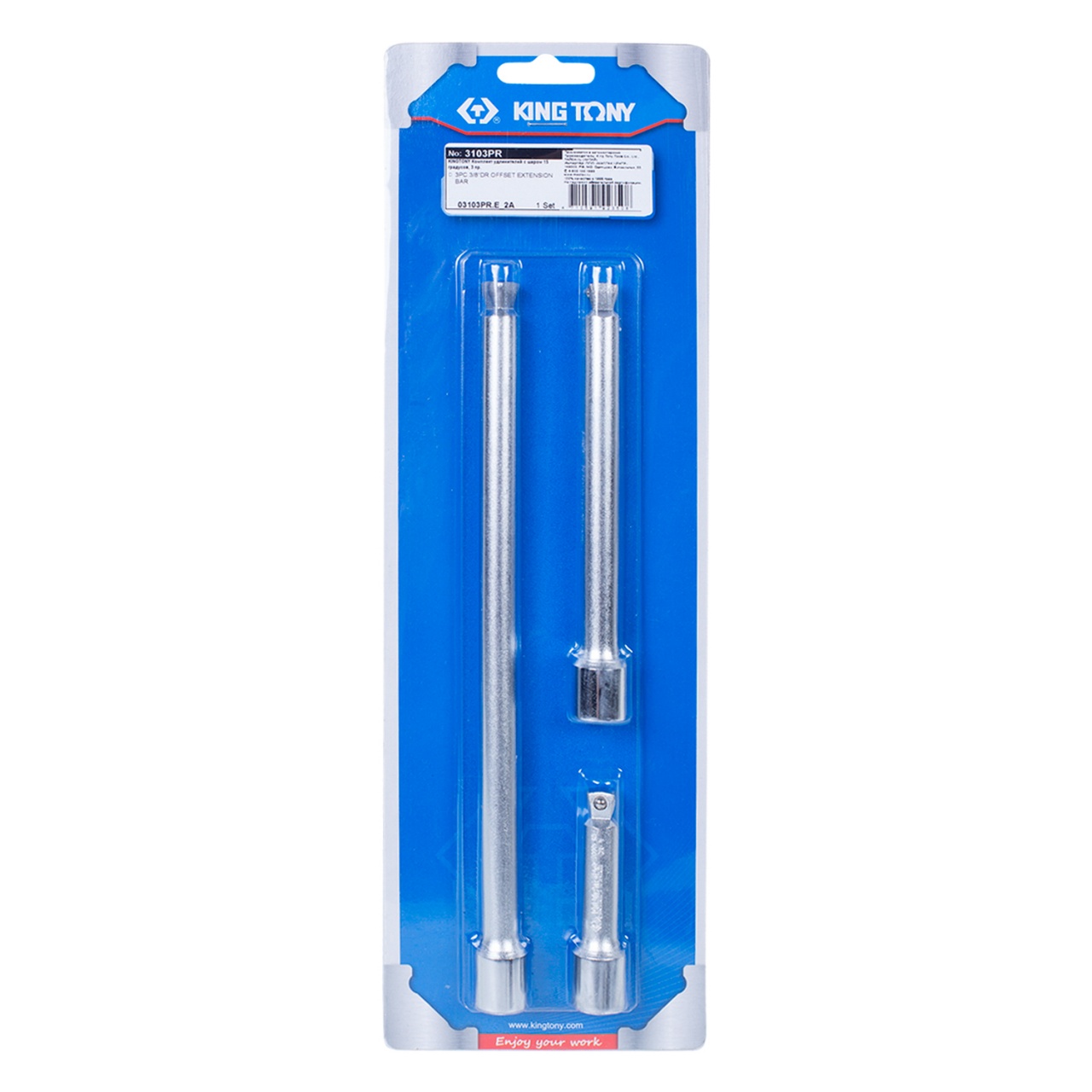 Набор удлинителей 3/8", 75, 150, 250 мм, 15 градусов, с шаровым окончанием, 3 предмета KING TONY 3103PR