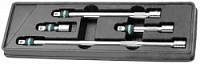 Набор удлинителей 1/2’’DR четырех размеров с приспособлением, позволяющим, за счет подвижного кольцевого фиксатора очень надежно удерживать насадку на квадрате удлинителя. Изделия изготовлены из хромованадиевой стали, имеют зеркальное хромоникелевое покрытие. Поставляются в ложементе, пригодном для хранения в инструментальном ящике.