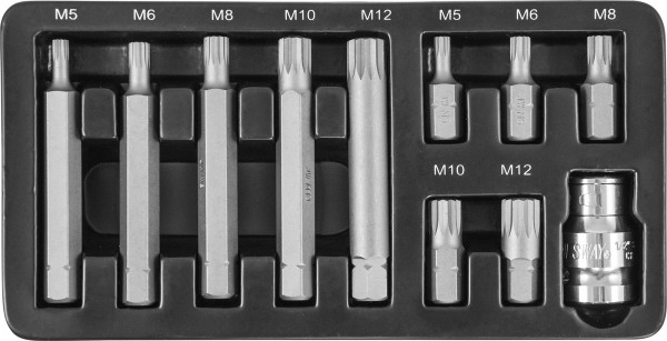 Применяется в машиностроении при работе с резьбовыми деталями с внутренними рабочими профилями. Набор вставок-бит "S29H4111S" предназначен для проведения ремонтных работ в сочетании с ручными приводами с крепежом, имеющим внутренний рабочий профиль SPLINE.
