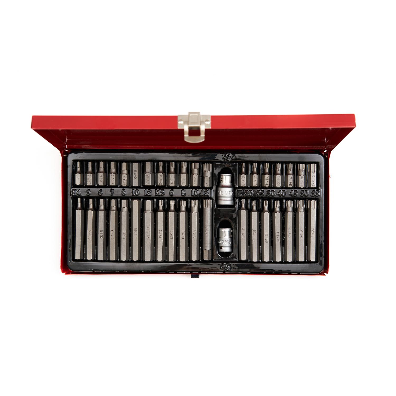 Набор вставок-бит ST097 состоит из 40 предметов, которые предназначены для работ с крепежом. Применяется для оснащения передвижных инструментальных тележек, верстаков, при создании рабочих мест на СТО и других предприятиях, занимающихся обслуживанием, а так же ремонтом различной техники. Инструмент поставляется в металлическом кейсе, что облегчает его транспортировку и делает эксплуатацию более удобной.