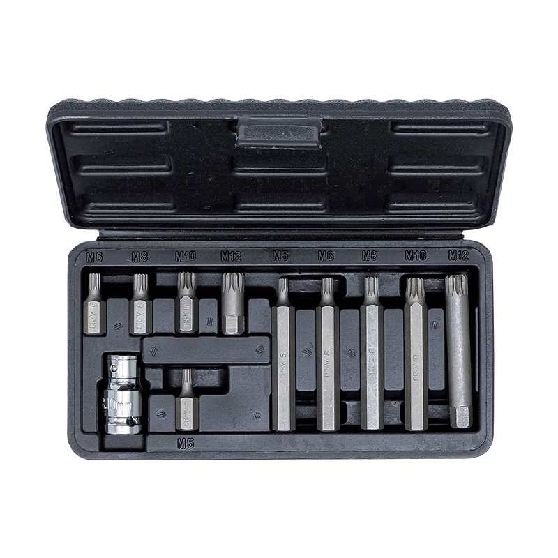 Предназначен для работы с соединениями типа SPLINE. Вставки изготовлены из прочной хромованадиевой стали. В комплект входит держатель вставки 1/2"DR.