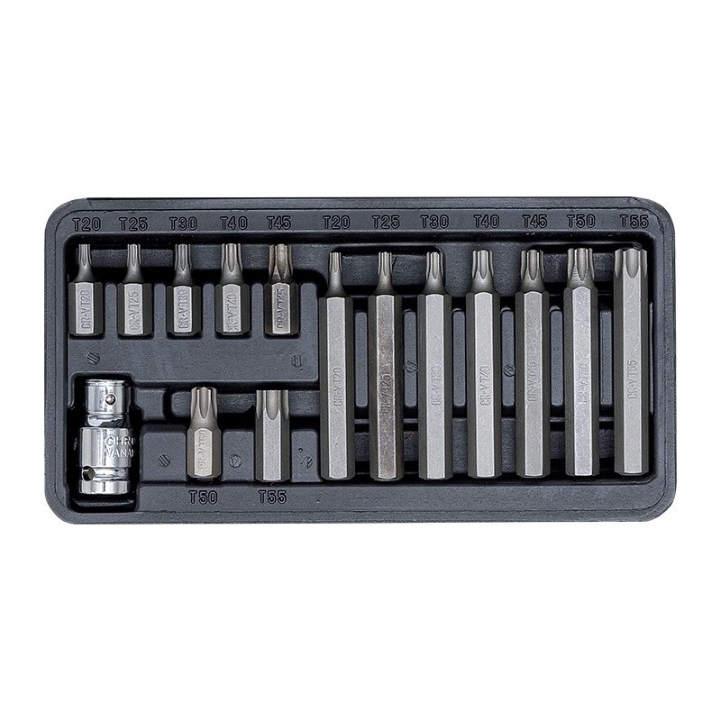 Предназначен для работы с соединениямитипа TORX. Вставки изготовлены из прочной хромованадиевой стали. В комплект входит держатель вставки 1/2"DR.