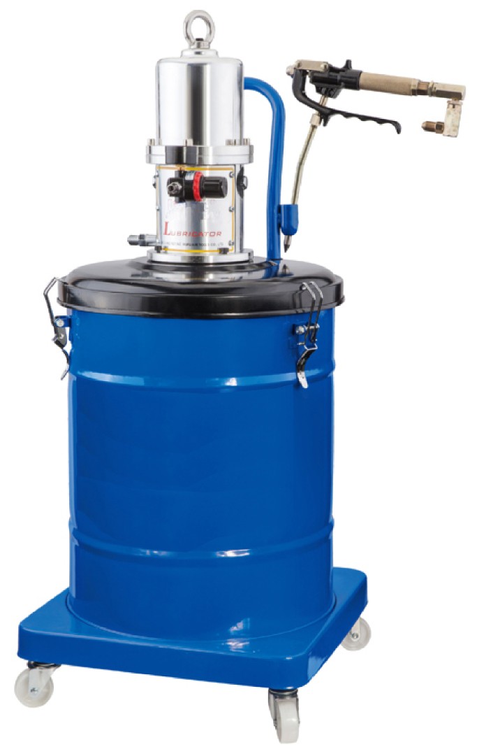 Нагнетатель густой смазки HG-68245 при помощи пневматического насоса создает высокое давление, заставляющее сжиматься консистентную смазку. Смазочный материал под давлением подается в пистолет-распылитель, а затем может дозировано распределяться по смазываемым частям механизмов.