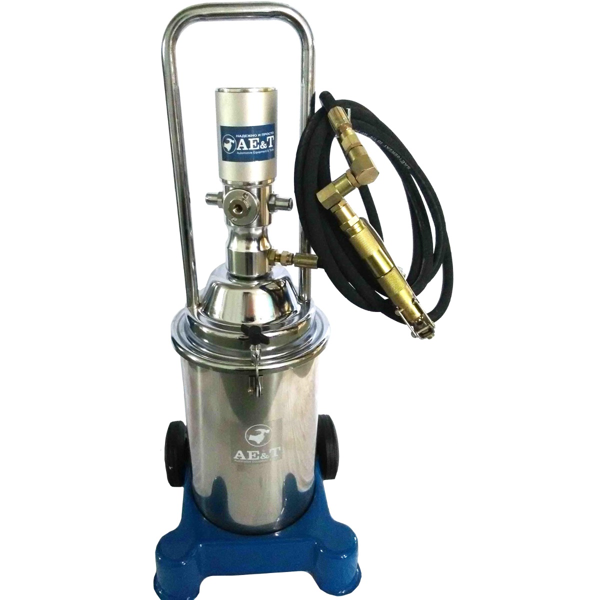Конструкция состоит из бака для смазки объемом 12 л, насосного агрегата с пневмоприводом, шланга высокого давления, быстросъемного соединителя и раздаточного пистолета. Для удобства перемещения устройство оснащено ручкой для переноски, имеет устойчивые опоры.