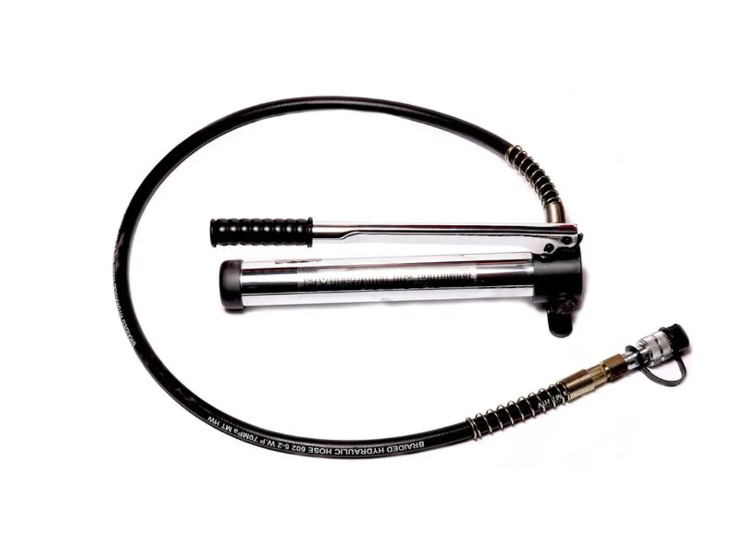 Ручной гидронасос 4т, с объёмом масла 0,4л, длиной шланга 1,5м и давлением 600 Bar - это автономный инструмент, который обеспечивает гидрооборудование энергией без каких-либо других источников питания. Устройство способно обеспечить высокие уровни давления, позволяющие совершать сложные задачи. Механизм работы насоса основан на движении поршня внутри гидроцилиндра. При его перемещении происходит захват жидкости, затем передается в систему и создает необходимое давление. Благодаря этому простому и надежному принципу работы, гидравлические насосы широко используются во множестве отраслей, включая производство, строительство и в автосервисе для кузовных работ. Основным назначением оборудования является превращение механической энергии в гидравлическую.
