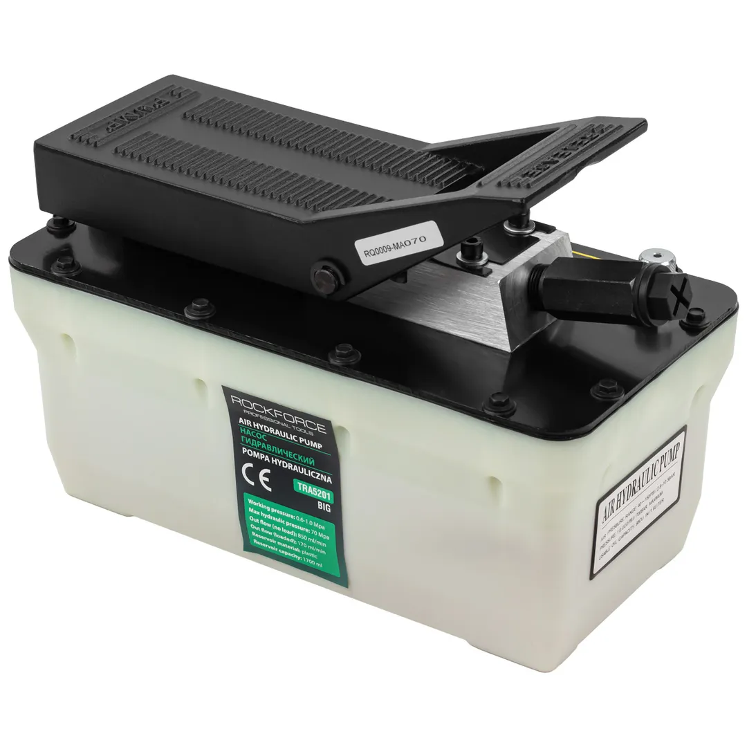 Насос пневмогидравлический ножной (рабочее давление 6-10 атм, давление гидравлической системы 690 атм) предназначен для гидравлического инструмента и оборудования. Объем камеры насоса составляет 1,7 литра, что обеспечивает быструю и эффективную работу. Имеет высокую производительность (скорость потока масла на выходе 850мл/мин без нагрузки и 170мл/мин под нагрузкой) и долговечность. Оснащен ножным механизмом и специальным клапаном для сброса давления, что обеспечивает безопасность при использовании. Педаль упрощает работу и освобождает руки оператора, что позволяет более эффективно распределять рабочее время. Корпус насоса выполнен из пластика, который обеспечивает облегченный вес и защиту от коррозии. Насос ножной пневмогидравлический работает со стапелями, гидравлическими цилиндрами и другими устройствами. Подойдет как для профессионалов, так и для любителей. Кроме того, следует отметить, что данный насос способен перекачивать как воздух, так и масло, что делает его универсальным инструментом для различных
