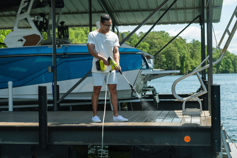 - Мощный бесщеточный двигатель позволяет легко решать сложные задачи, например такие, как мойка настилов.