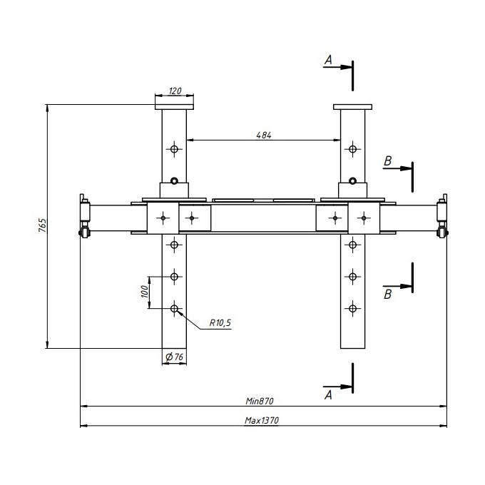 Опорная система для вывешивания передних осей грузового автомобиля 125 мм Гамматест GTM5010.
