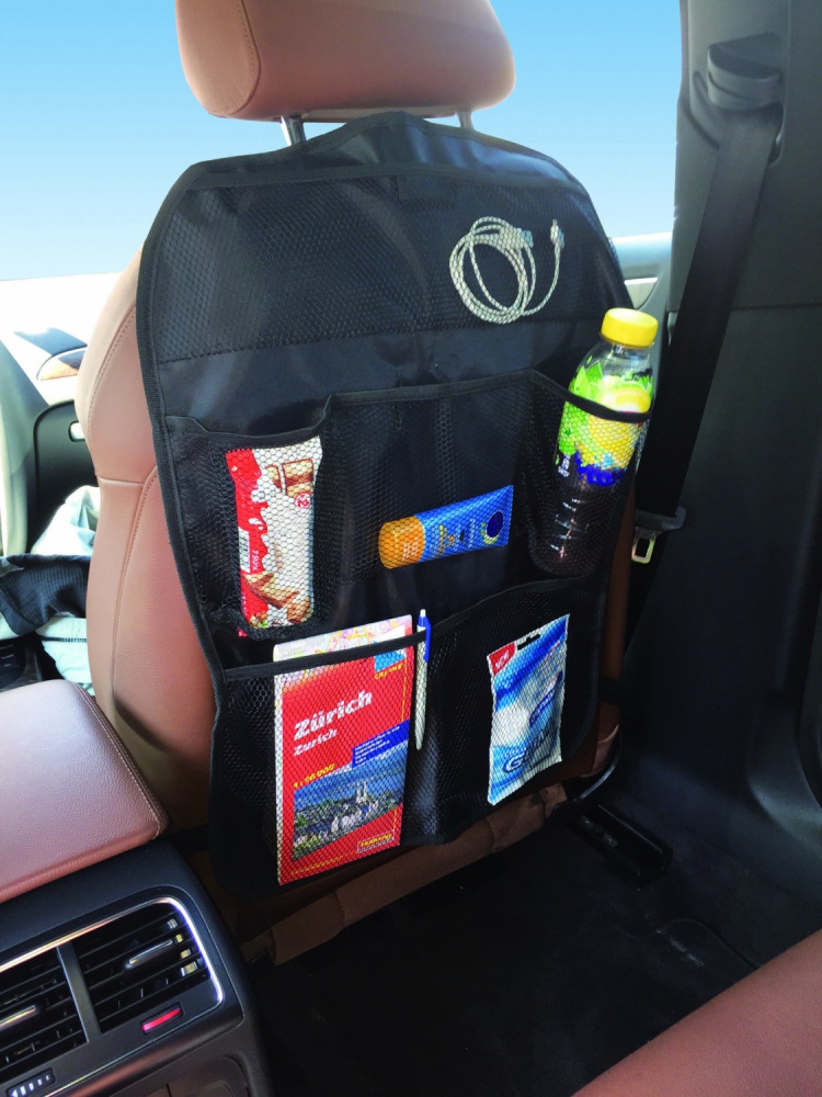 Удобен для хранения и перевозки небольших вещей в салоне автомобиля. MP3 плеер, CD диски, мобильный телефон, газеты и журналы, пара небольших бутылок с водой – всё это Вы сможете разместить на задней спинке сиденья.