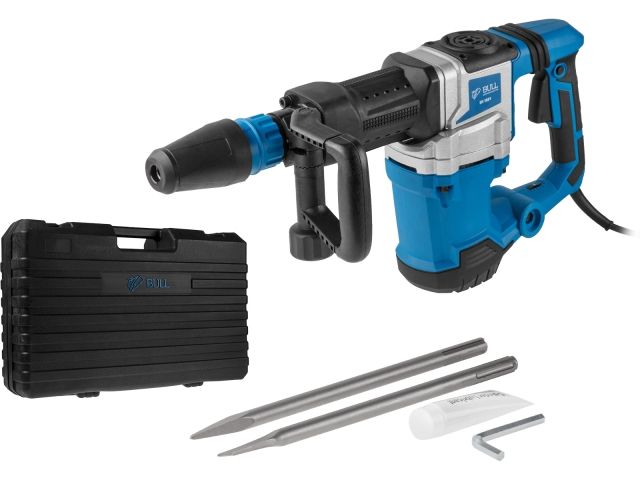 Отбойный молоток предназначен для дробления бетона, слома бетонных покрытий, проделывания проёмов. Модель обладает удобным 12-позиционным расположением долота в патроне, что особенно актуально при работе с лопаточными зубилами. Отбойный молоток оснащен регулировкой скорости удара. Универсальный патрон инструмента SDS-max позволяет надежно фиксировать оснастку. Наличие антивибрационной рукоятки делает работу менее утомительной для оператора. Корпус из магниевого сплава защищает внутренние элементы инструмента от механических воздействий, а повышенная прочность ударных частей редуктора и высокотемпературная смазка обеспечат продолжительный срок службы инструмента. Отбойный молоток оснащен морозоустойчивым резиновым кабелем, для комфортной работы в любых температурных условиях и имеет общую длину равную 5 метрам. Поставляется в кейсе.