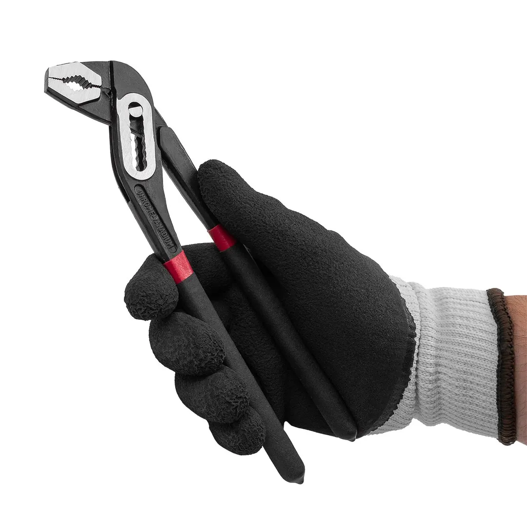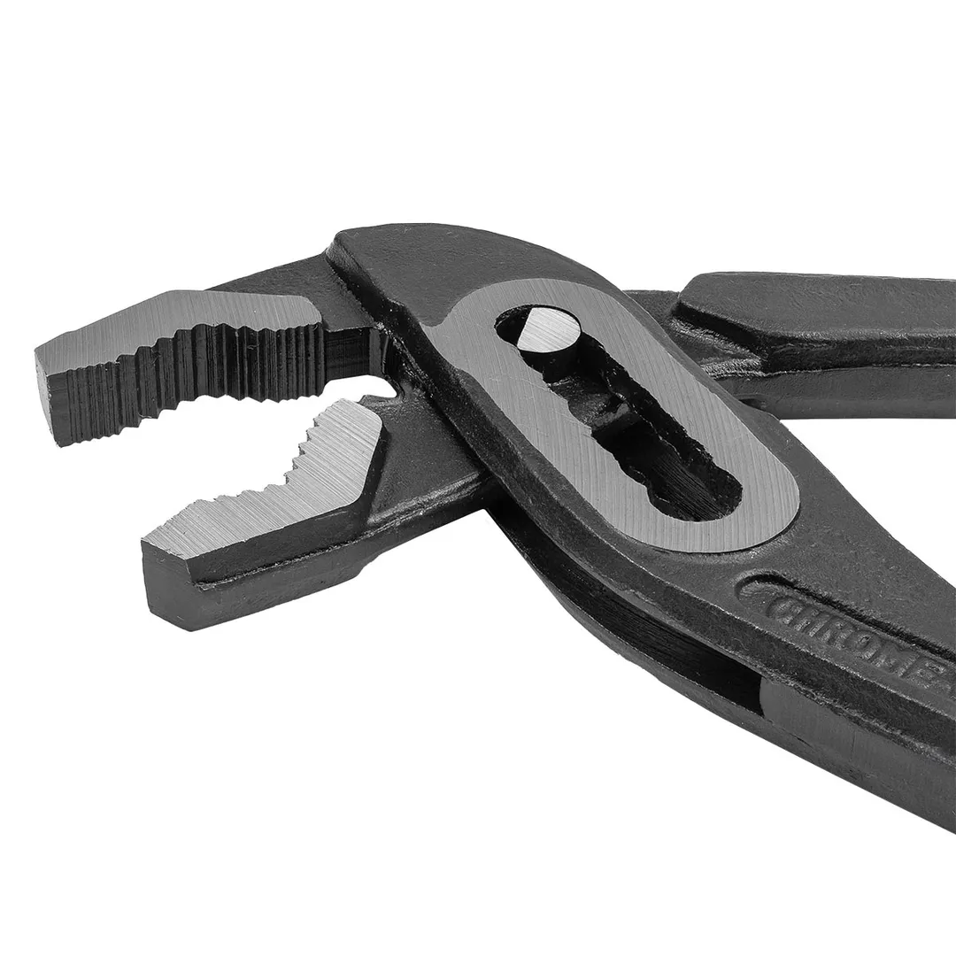Пассатижи переставные имеют длину 250 мм. Универсальные губки позволяют захватывать предметы любой формы- круглые, квадратные, шестигранные или плоские. Эргономичная рукоятка выполнена из пластика с матовым покрытием, что повышает комфорт и минимизирует скольжение рук при использовании. Защита пальцев от защемления поможет избежать травм. Хромованадиевая сталь, из которой изготовлены пассатижи, обеспечивает прочность и долговечность, а также оптимальные режущие свойства и срок службы.