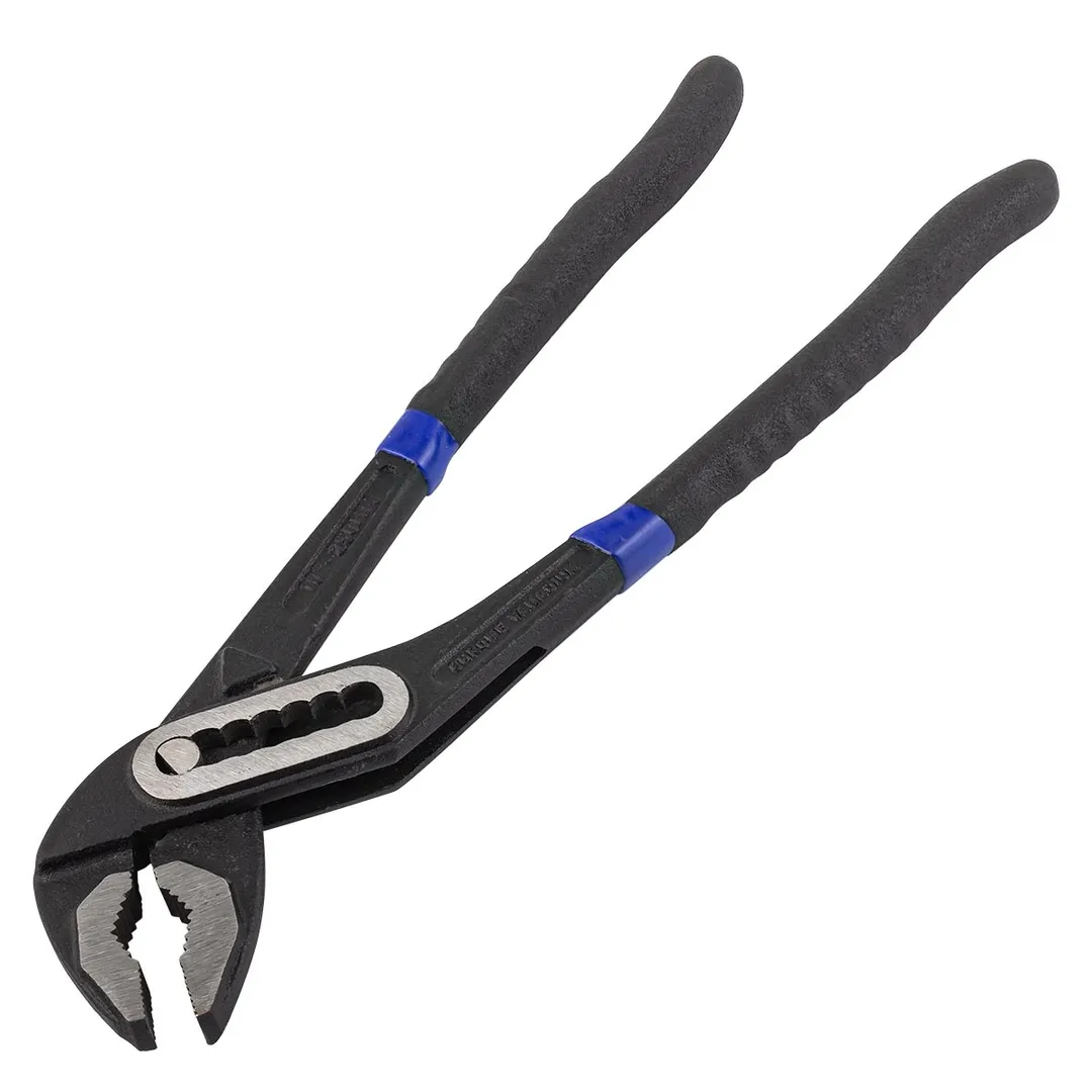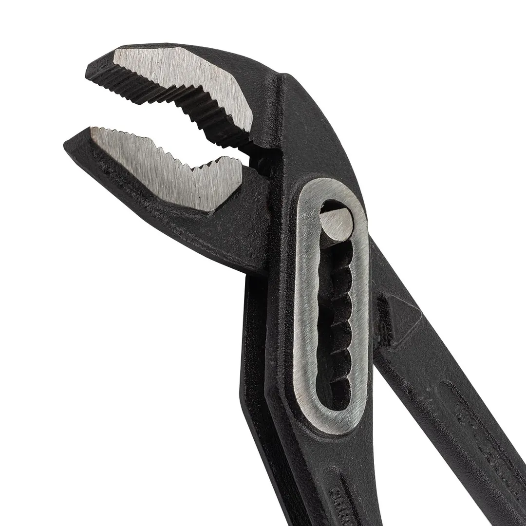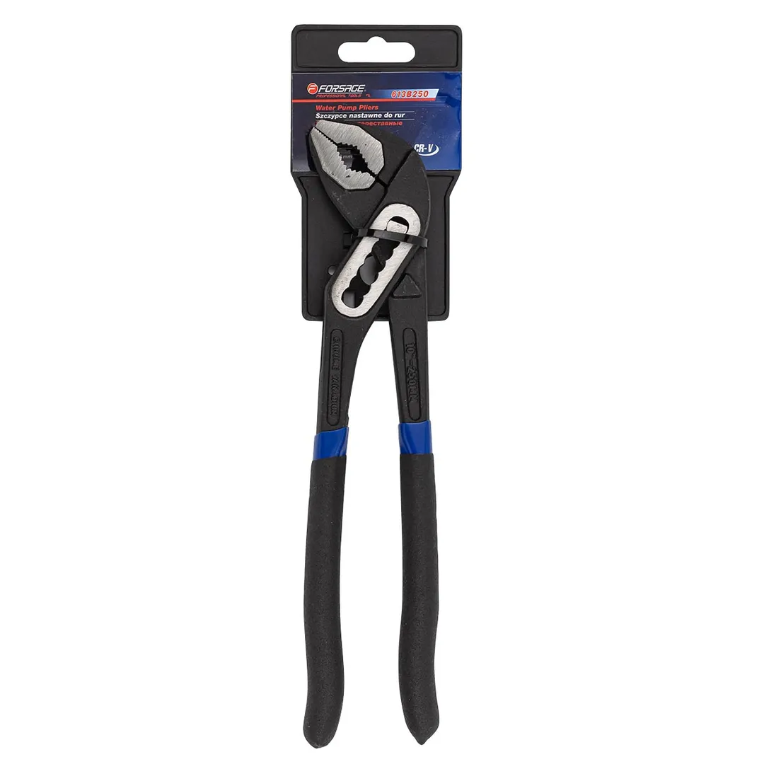 Пассатижи переставные имеют длину 250 мм. Универсальные губки позволяют захватывать предметы любой формы- круглые, квадратные, шестигранные или плоские. Эргономичная рукоятка выполнена из пластика с матовым покрытием, что повышает комфорт и минимизирует скольжение рук при использовании. Защита пальцев от защемления поможет избежать травм. Хромованадиевая сталь, из которой изготовлены пассатижи, обеспечивает прочность и долговечность, а также оптимальные режущие свойства и срок службы.