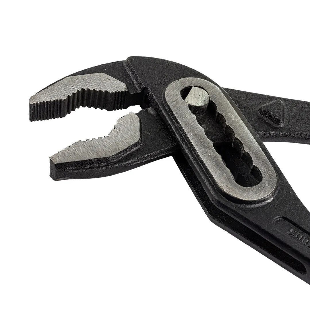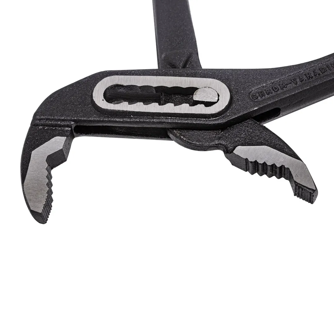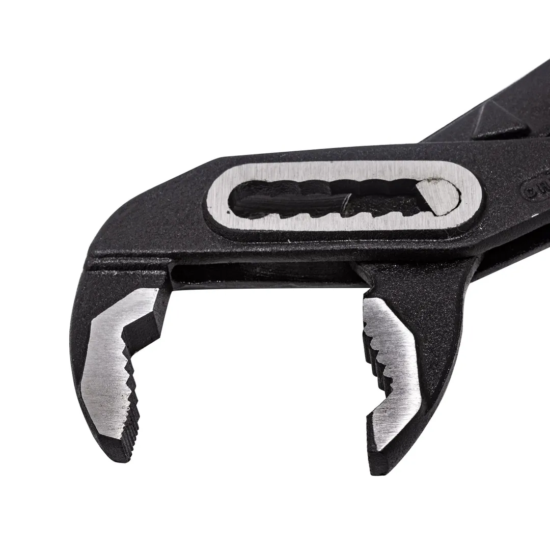Пассатижи переставные имеют длину 300 мм. Универсальные губки позволяют захватывать предметы любой формы- круглые, квадратные, шестигранные или плоские. Эргономичная рукоятка выполнена из пластика с матовым покрытием, что повышает комфорт и минимизирует скольжение рук при использовании. Защита пальцев от защемления поможет избежать травм. Хромованадиевая сталь, из которой изготовлены пассатижи, обеспечивает прочность и долговечность, а также оптимальные режущие свойства и срок службы.