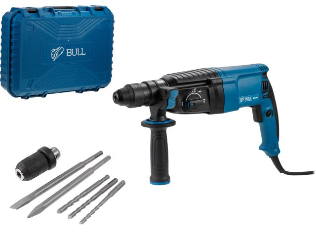 Мощный двигатель перфоратора обеспечивает высокую производительность инструмента. Наличие патрона SDS-plus в перфораторе позволяет сменить осанастку легко и быстро. Перфоратор имеет 4 режима работы: сверление, сверление с ударом, долбление, а также режим поворота долота. Переключение между режимами осуществляется с помощью специального переключателя. Перфоратор оснащен функцией реверса для легкого выкручивания сверла из материала.