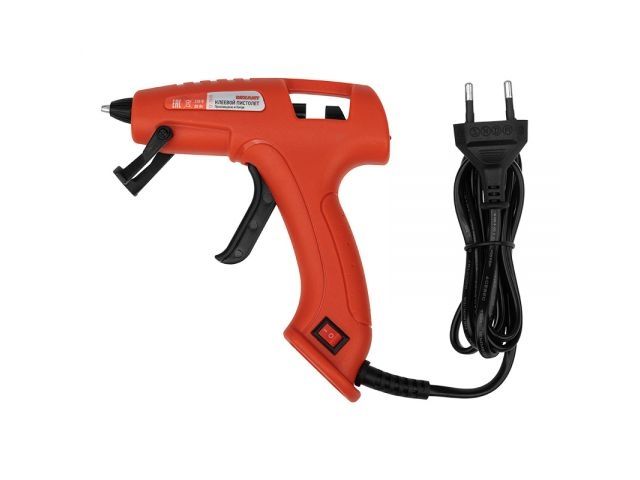Принцип работы: клеевой стержень плавится в металлической камере с помощью нагревательного устройства и для точного дозированного нанесения при нажатии на курок подается из сопла на склеиваемую поверхность. Используется в моделировании, рукоделии, при выполнении мелкого ремонта, для изготовления упаковочной и сувенирной продукции, монтажа электрических плат, декорирования, и т.п.