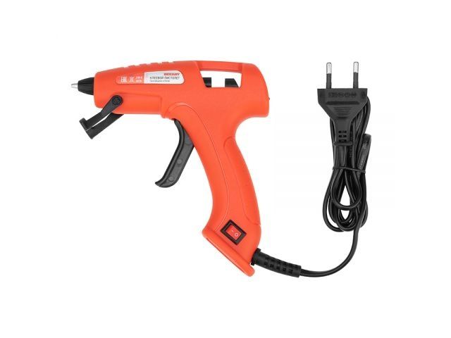 Принцип работы: клеевой стержень плавится в металлической камере с помощью нагревательного устройства и для точного дозированного нанесения при нажатии на курок подается из сопла на склеиваемую поверхность. Используется в моделировании, рукоделии, при выполнении мелкого ремонта, для изготовления упаковочной и сувенирной продукции, монтажа электрических плат, декорирования, и т.п.