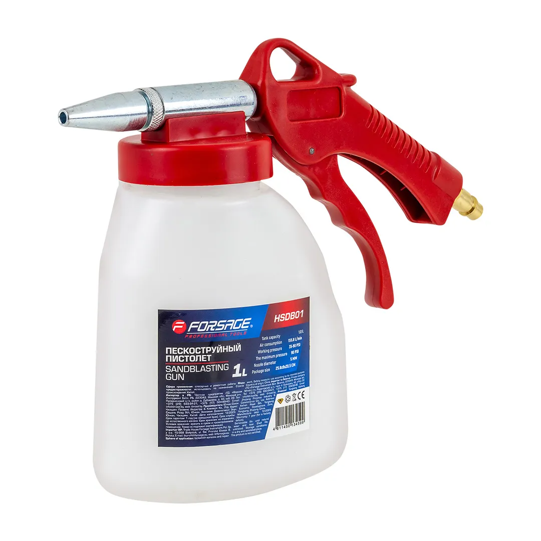 Пескоструйный пистолет со встроенной емкостью для песка предназначен для снятия ржавчины, грунта, слоев краски, следов коррозии, матирования. Оборудован бачком для песка. Прочный корпус устойчив к механическим повреждениям. Благодаря наличию бачка не требуется подключение дополнительного шланга для подачи песка.